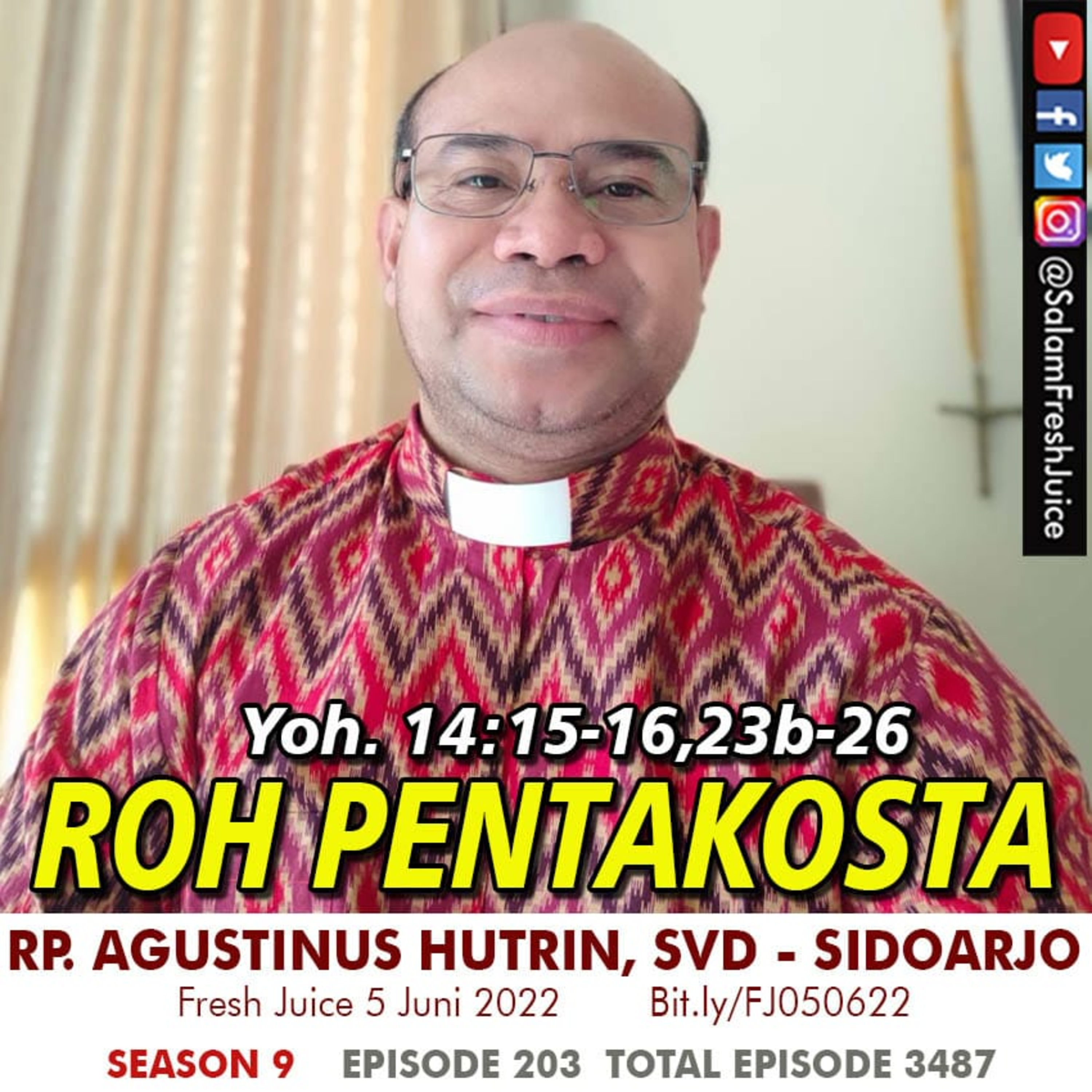 Fresh Juice 5 Juni 2022 Renungan Harian Audio Katolik Yoh. 14 : 15 - 16; 23b - 26 Tema : Roh Pentakosta Pembawa Renungan : RP. Agustinus Hutrin, SVD - Sidoarjo