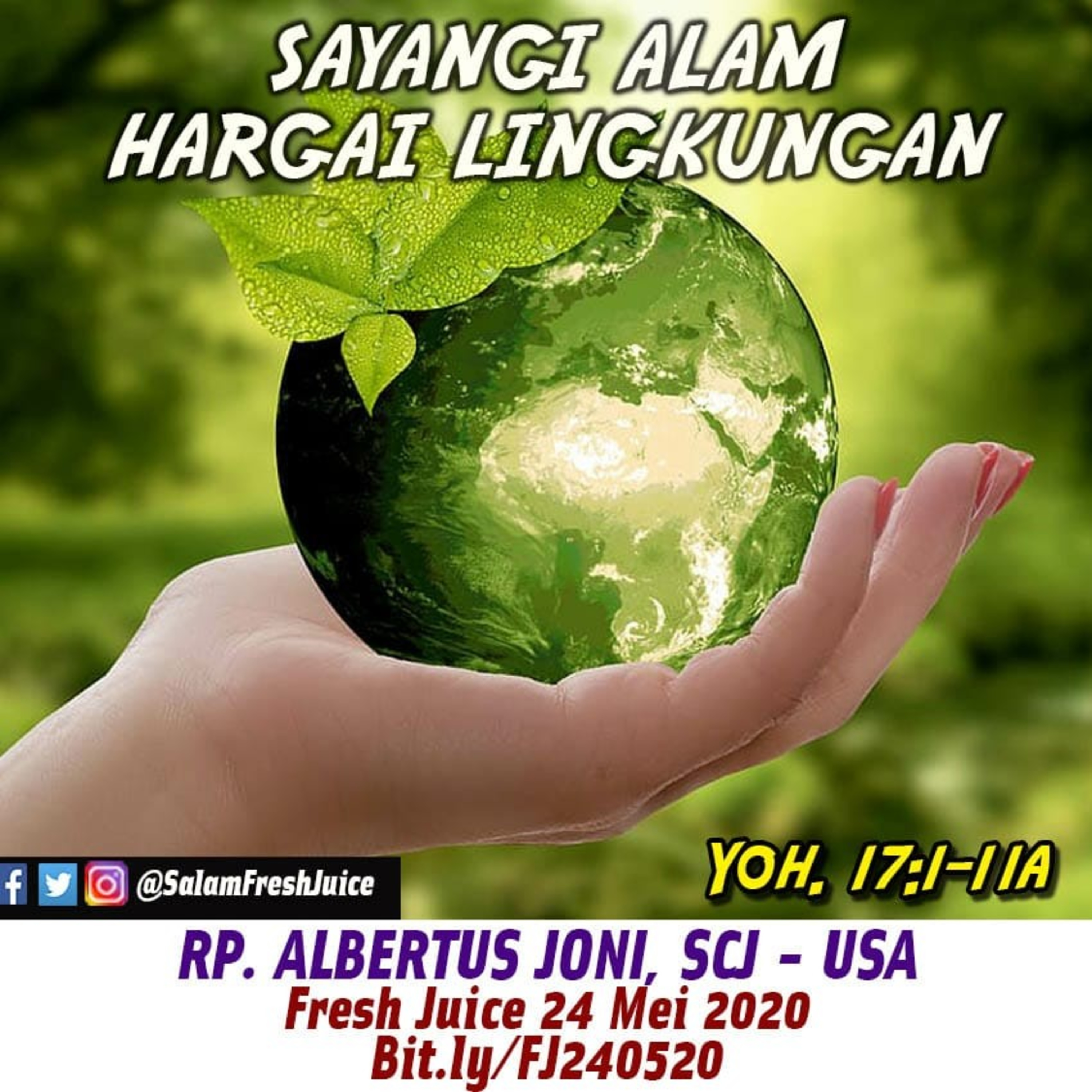 Yoh. 17:1-11a. Tema : Sayangi Alam, Hargai Lingkungan Pembawa Renungan : RP. Albertus Joni, SCJ Wisconsin - USA