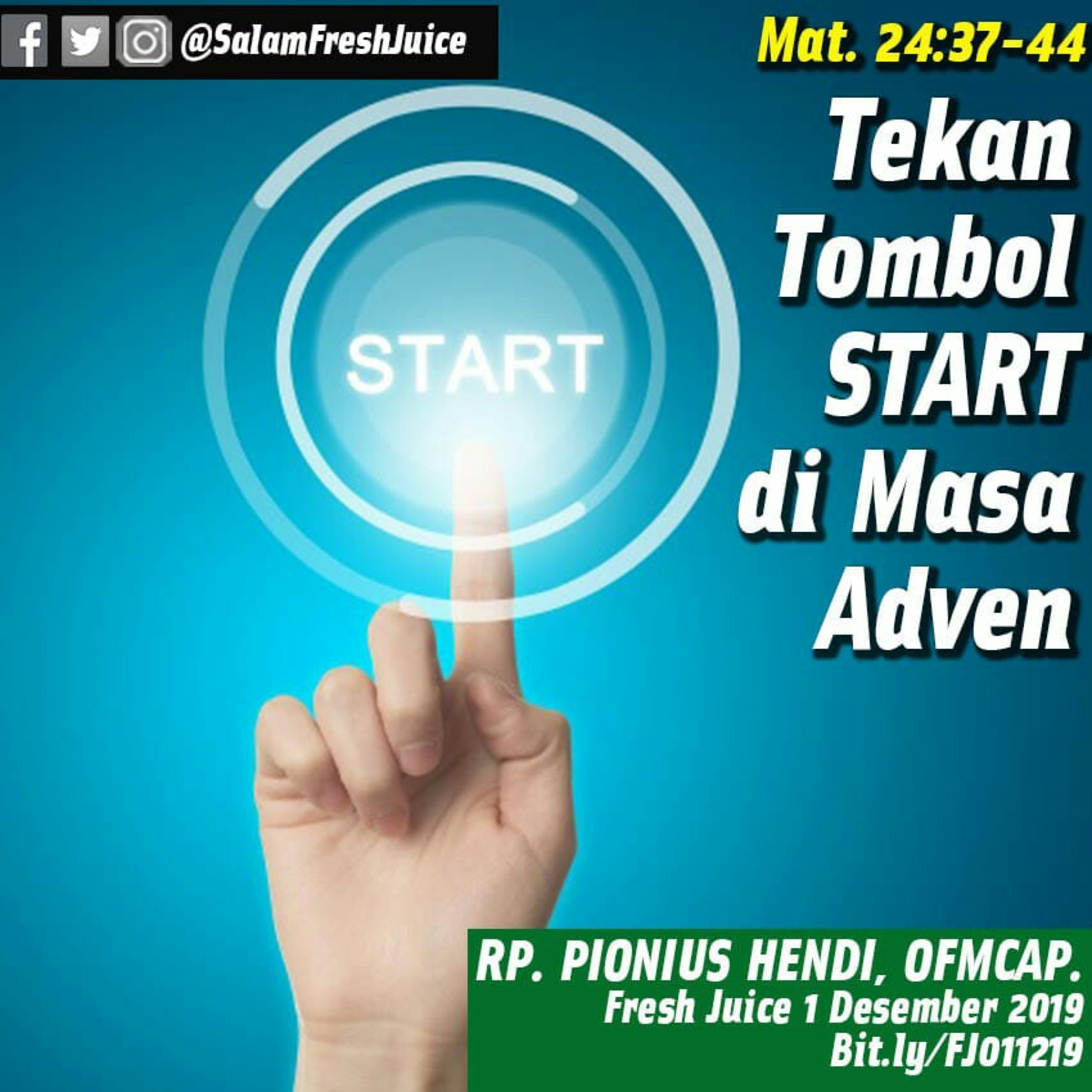 Mat. 24:37-44. Tema : Tekan Tombol START di Masa Adven Pembawa Renungan : RP. Pionius Hendi, OFMCap. Sydney - Australia