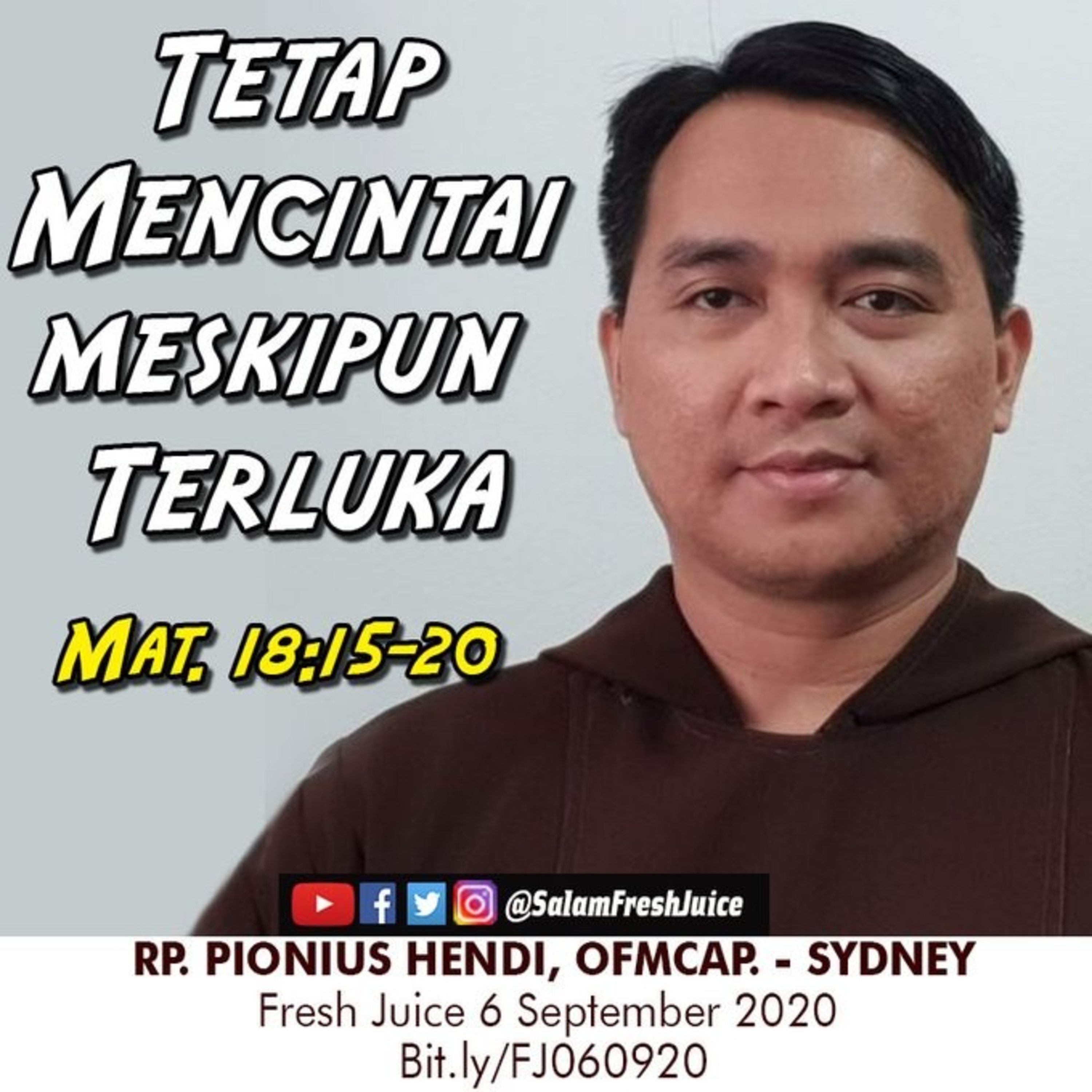 Fresh Juice 6 September 2020 Renungan Harian Audio Katolik Mat. 18:15-20 Tema : Tetap Mencintai meskipun Terluka Pembawa Renungan : RP. Pionius Hendi, OFMCap. Sydney - Australia