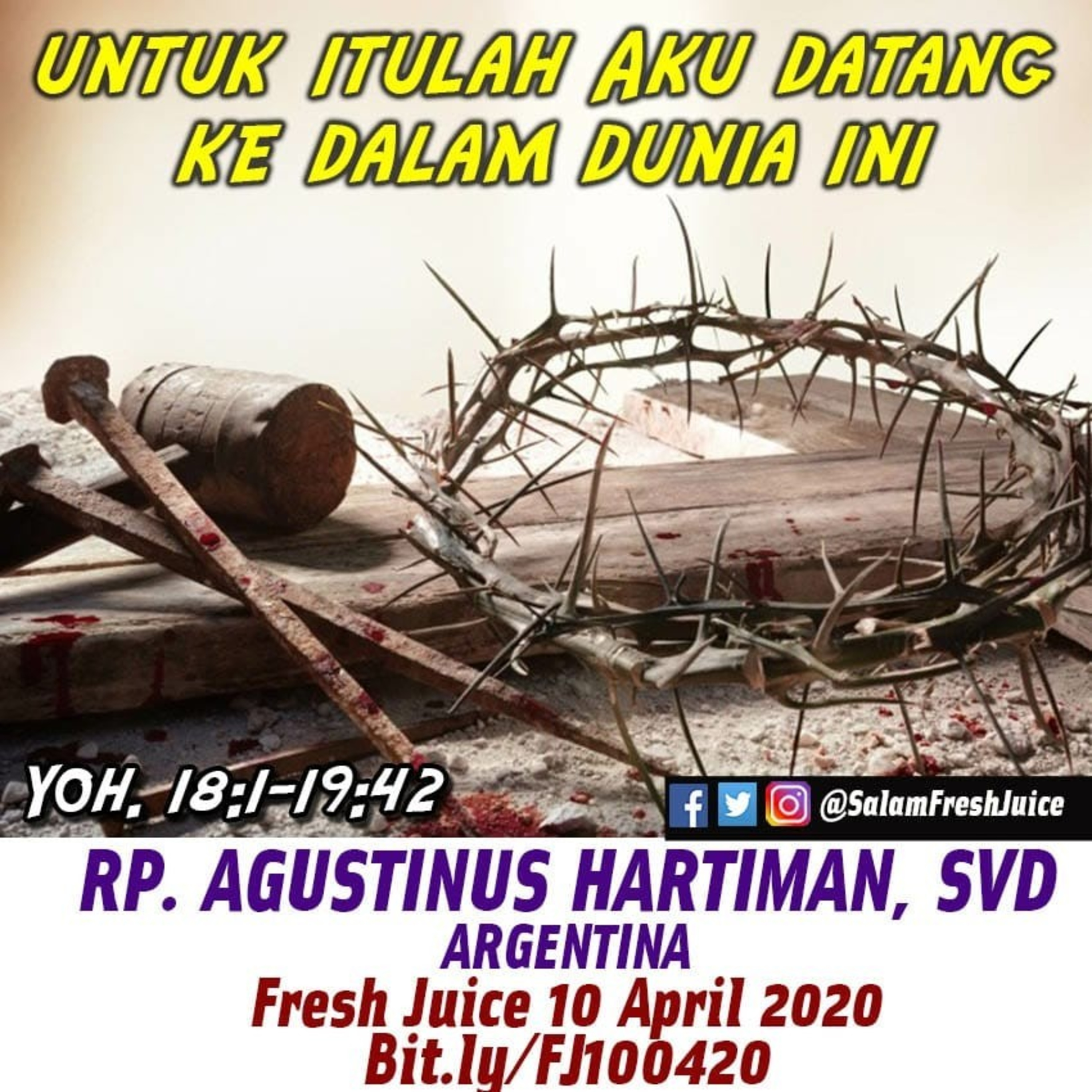 Yoh. 18:1-19:42. Tema : Untuk itulah Aku datang ke dalam dunia ini Pembawa Renungan : RP. Agustinus Hartiman, SVD Argentina