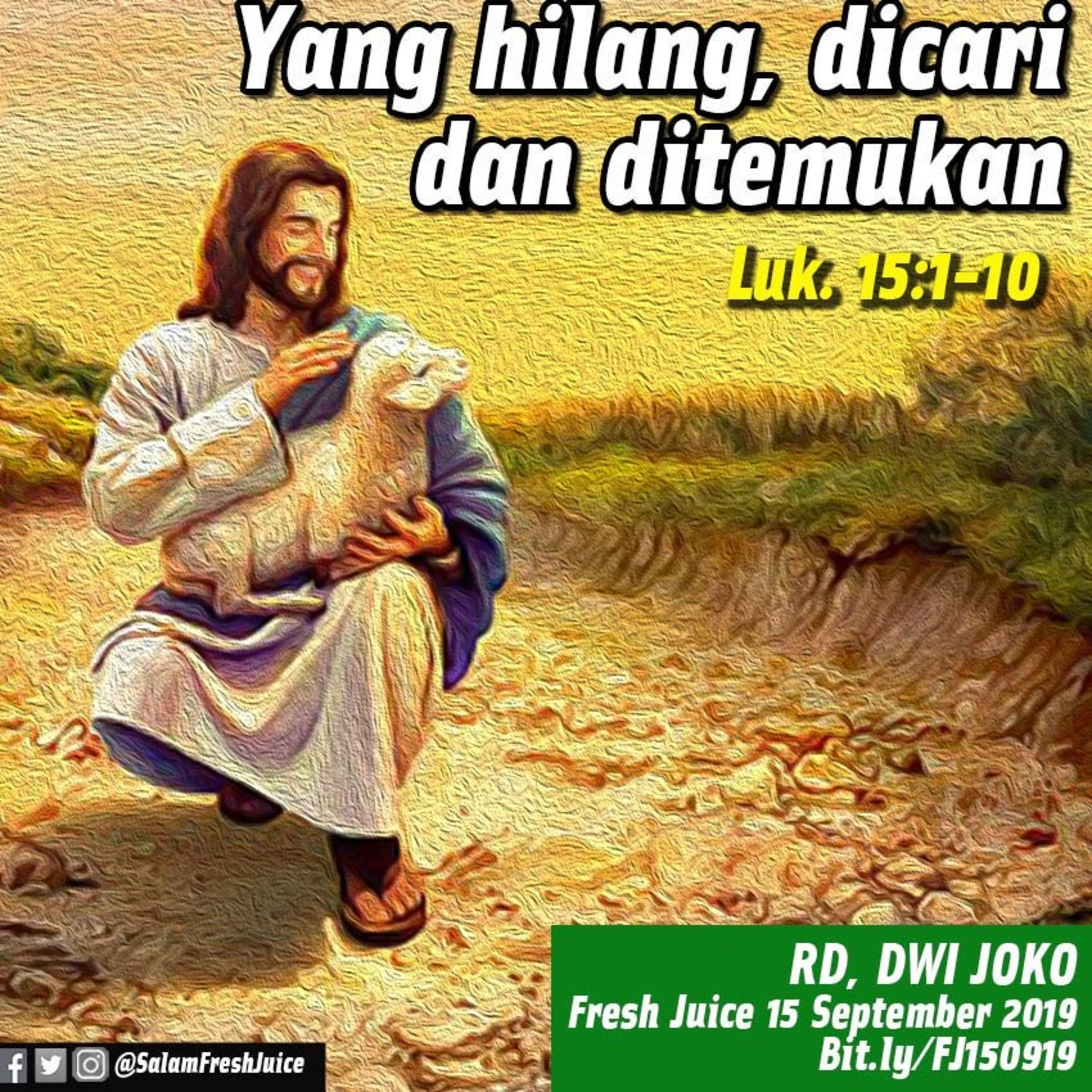 Fresh Juice 15 September 2019 Renungan Harian Audio Katolik Luk. 15:1-10 Tema : Yang hilang, dicari dan ditemukan Pembawa Renungan : RD. Dwi Joko Surabaya