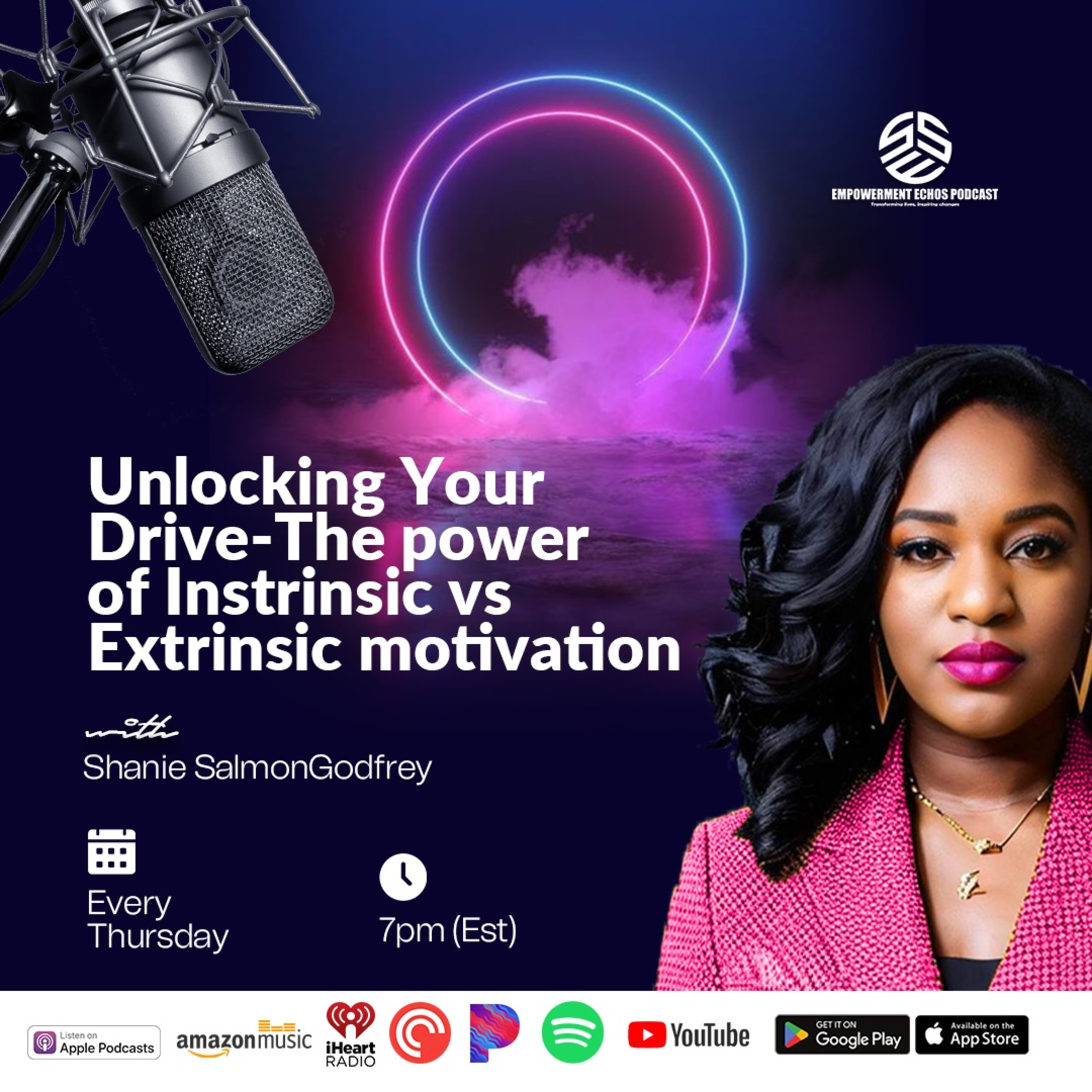 In this episode of Empowerment Echoes, host Shanie Salmon Godfrey explores the fascinating world of motivation, specifically the differences between intrinsic and extrinsic motivation. Understanding these types of motivation can help you unlock your drive to achieve any goal, whether it's boosting productivity, sticking to a workout routine, or pursuing a passion project. Learn how to balance both types of motivation to stay motivated and committed to your goals, and hear real-life stories that illustrate their power.