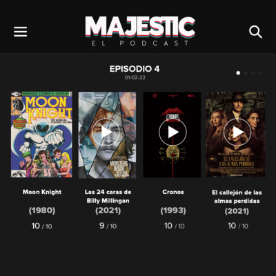 En este capitulo de #majestic #elpodcast Mr Pillo nos platica sobre la historia de #Moonknight para conocer al personaje antes de que se estrene la serie de Marvel. Bere nos trae las ÑAÑARAS semanales hablando del documental de Billy Milligan que está en Netflix y nos dice por qué tenemos que verlo. Mi buen Robert y Joel nos cuenta la historia de como Guillermo del Toro comenzó su carrera cinematográfica y Fofet nos comparte una reseña de #ElCallejondeLasALmasPerdidas la última película de Guillermo del Toro.