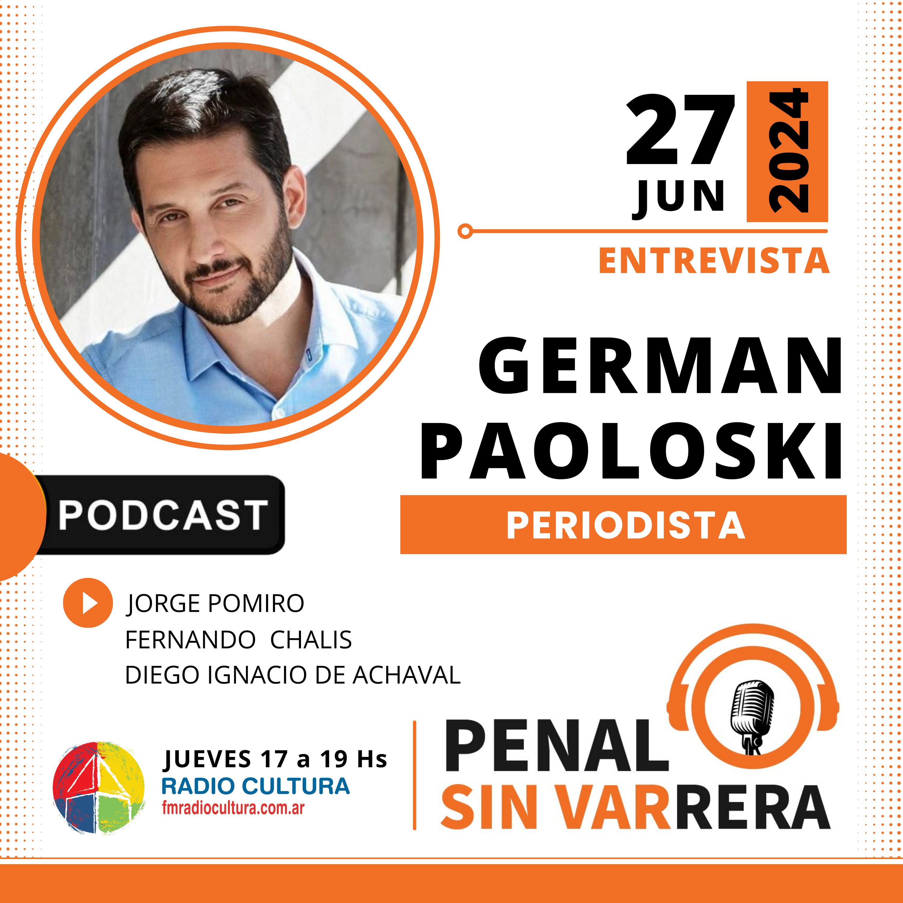 Episodio #135 | Conversamos con Germán Paoloski, uno de los periodistas deportivos más destacados de la actualidad. Germán nos cuenta sobre su día a día, su carrera y cómo balancea sus responsabilidades laborales y familiares. Además, reflexiona sobre la evolución de los medios de comunicación y comparte sus planes y objetivos para el futuro. Una charla imperdible llena de anécdotas, humor y pasión por el periodismo. ¡No te lo pierdas!