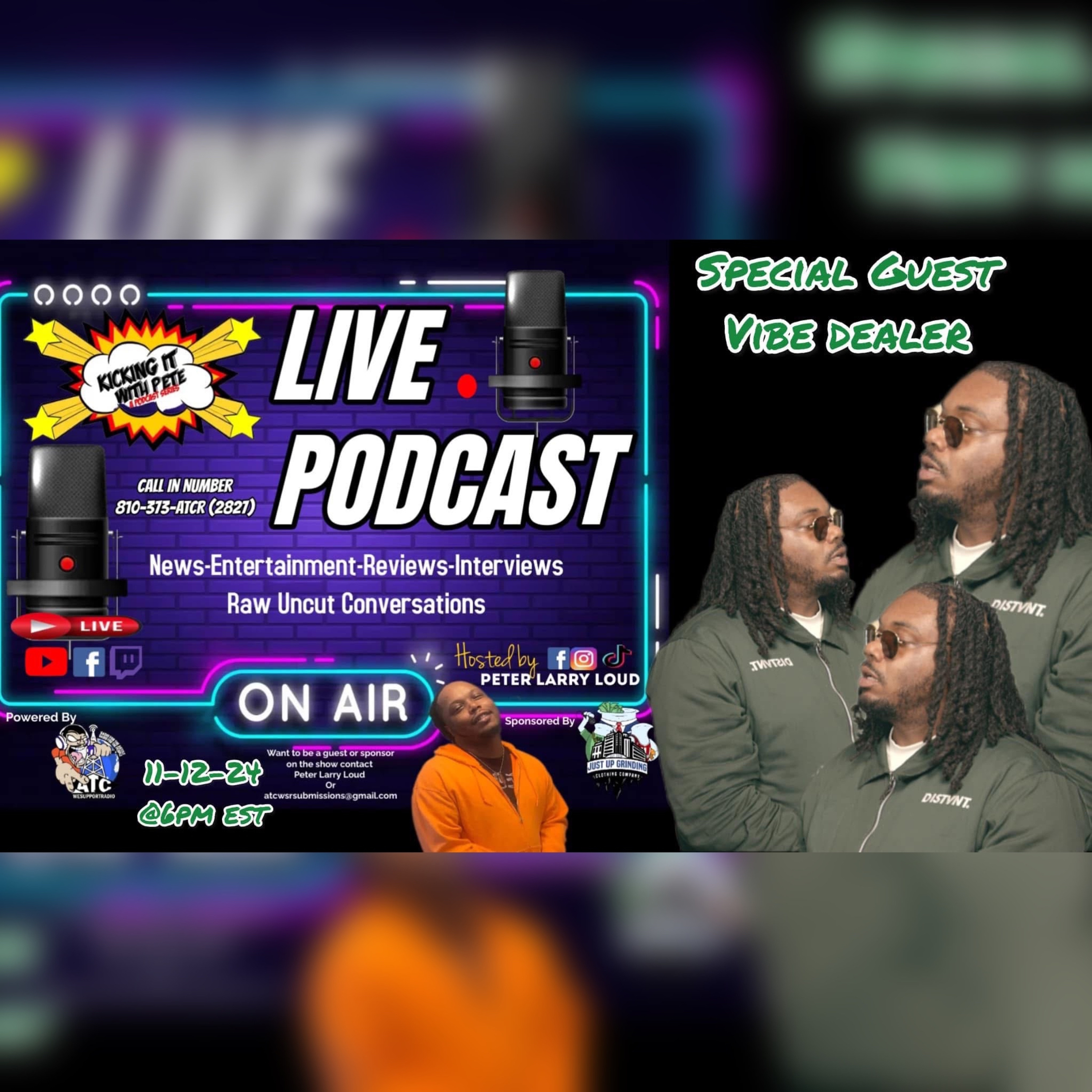It's about that time ! Pull Up a Seat and tell a friend you Kicking It With Pete ! We got Vibe Dealer in the building! Come catch a vibe and tap into his creative side! We Bout To Keep It P and Address some Stuff ! Surprise Guest Dj Jay Big