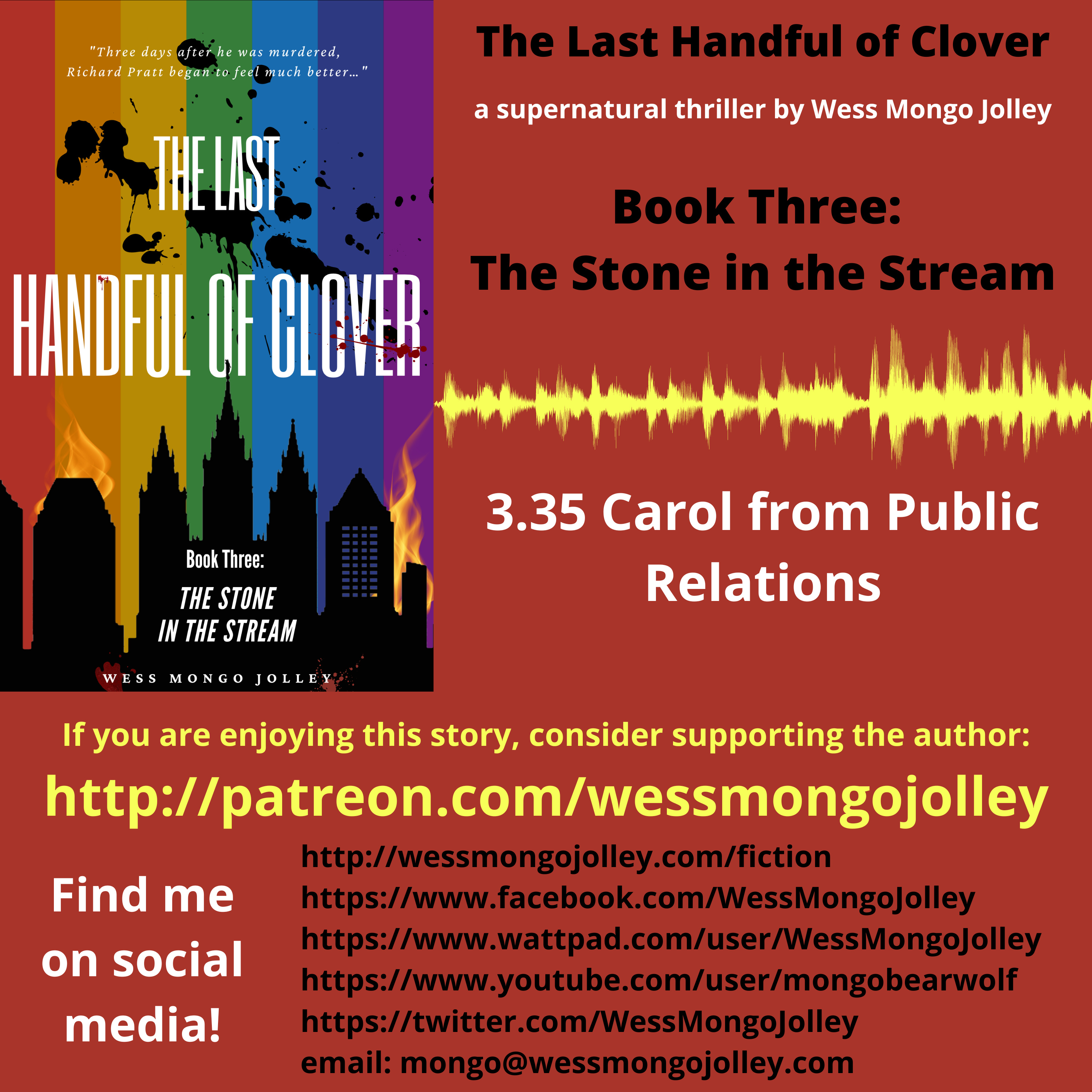 If you're interested in READING the book, rather than listening to the audiobook, it is available at the Patreon link above, and also on WattPad: https://www.wattpad.com/user/WessMongoJolley, and on QSaltLake.com: https://www.qsaltlake.com/news/category/views/columnists/clover/.