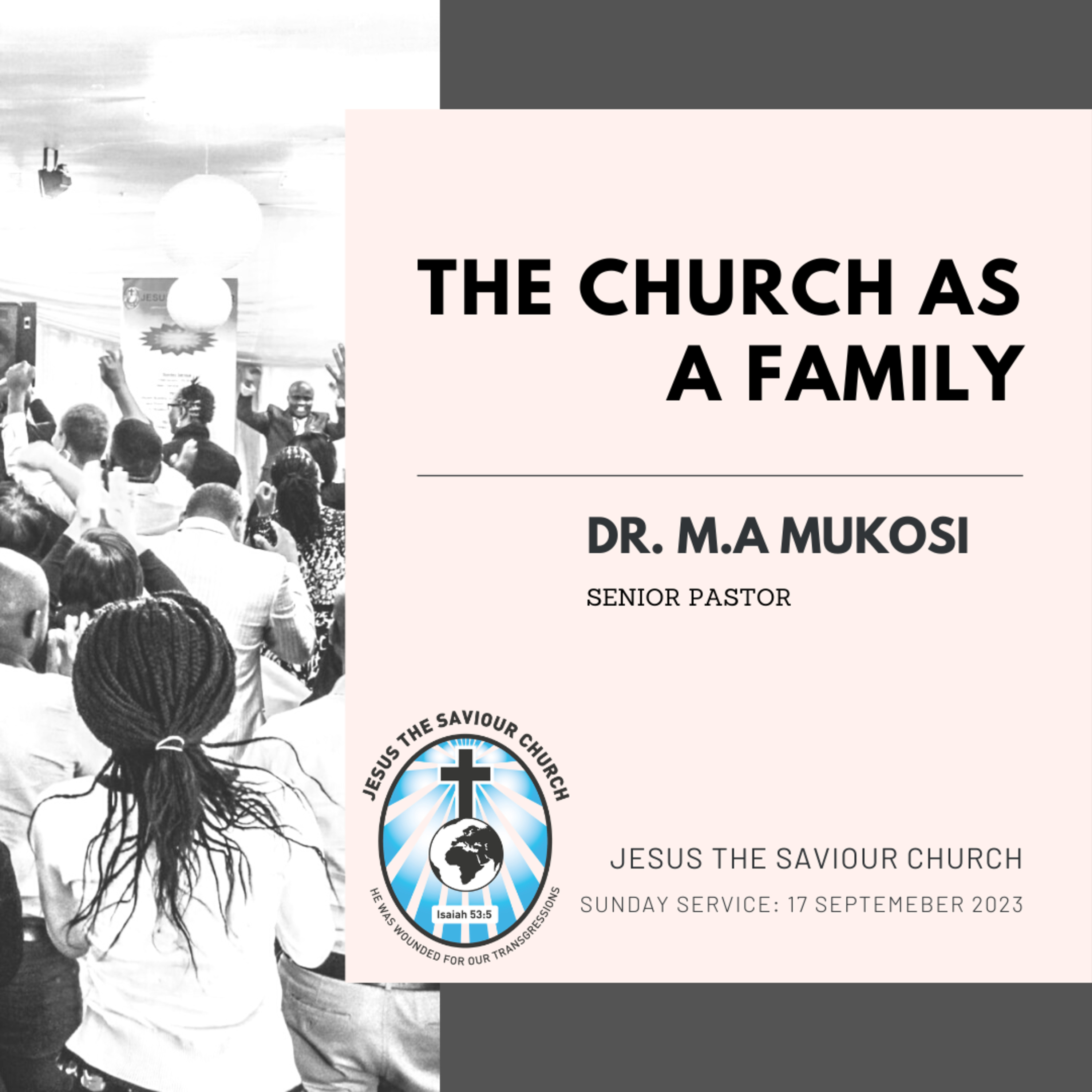 Listen to a sermon by Senior Pastor: Dr. M.A Mukosi, titled: The Church as a Family - preached at Jesus the Saviour Church, 185 Bobs Way, Eersterivier, Cape Town on 18 September 2023.