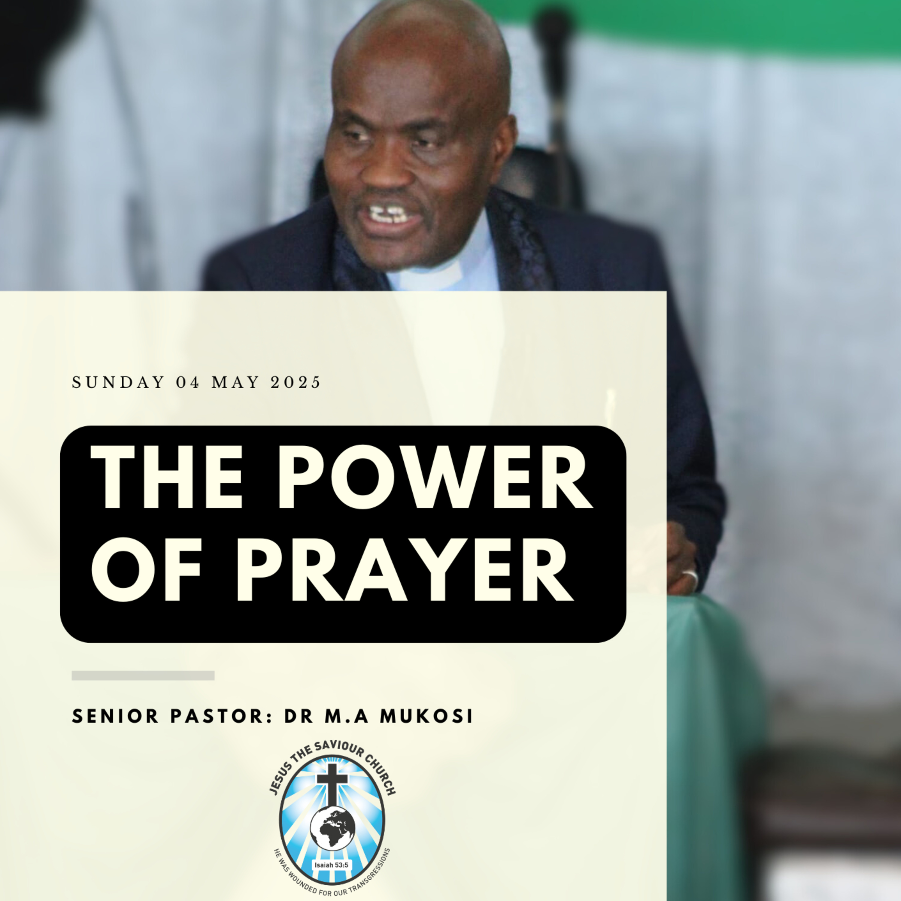 Listen to a sermon by Senior Pastor: Dr. M.A Mukosi, titled: The Power of Prayer - preached at Jesus the Saviour Church, 185 Bobs Way, Eersterivier, Cape Town on 04 May 2025.