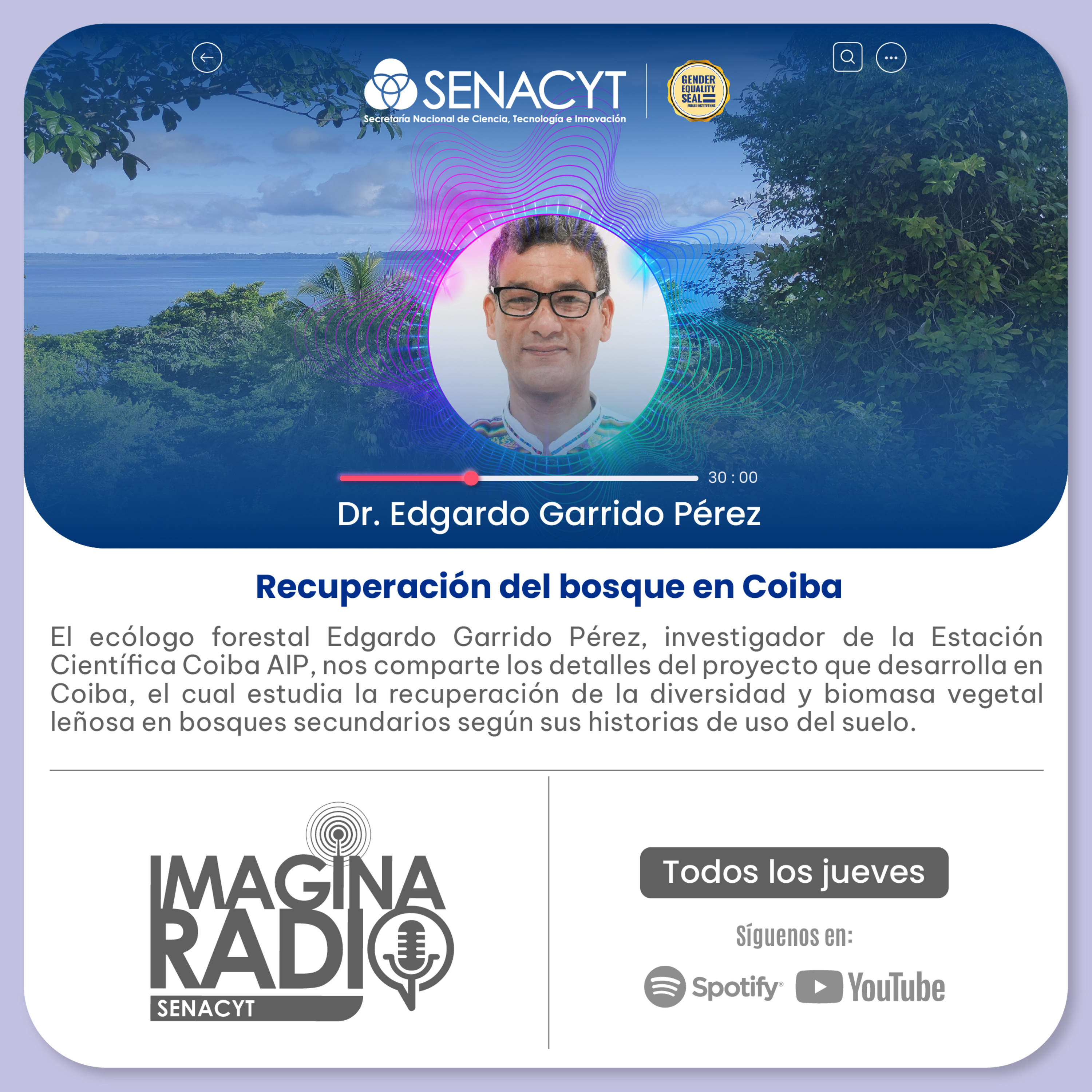 Hoy, nos acompaña el Dr. Edgardo Garrido Pérez, ecólogo forestal e investigador de la Estación Científica Coiba AIP. 🌳💚quien nos comparte los detalles del proyecto que desarrolla en Coiba, el cual estudia la recuperación de la