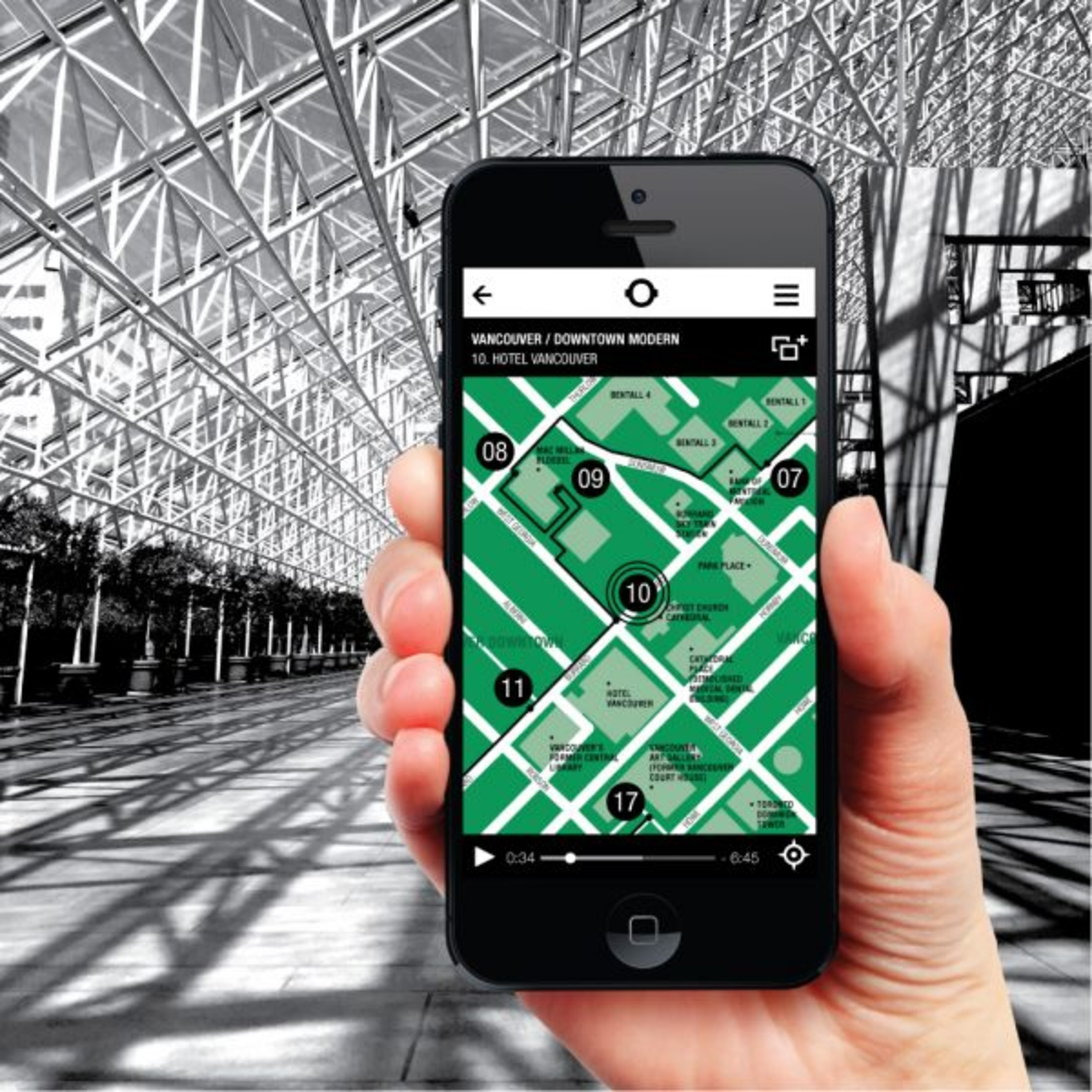 Cette balade a une approche critique de l’architecture moderne vancouvéroise et de son développement. L’histoire couverte commence à l’arrivée du chemin de fer du Canadien Pacifique à Burrard Inlet. Vous entendrez entre autres les architectes Peter Busby, Bing Thom, et la grande architecte paysagiste Cornelia Oberlander accompagnée d’une composition de Leah Abramson avec son harpe éolienne. Ici, découvrez la tour Electra avec l’intervention du professeur émérite Rhodri Windsor-Liscombe.