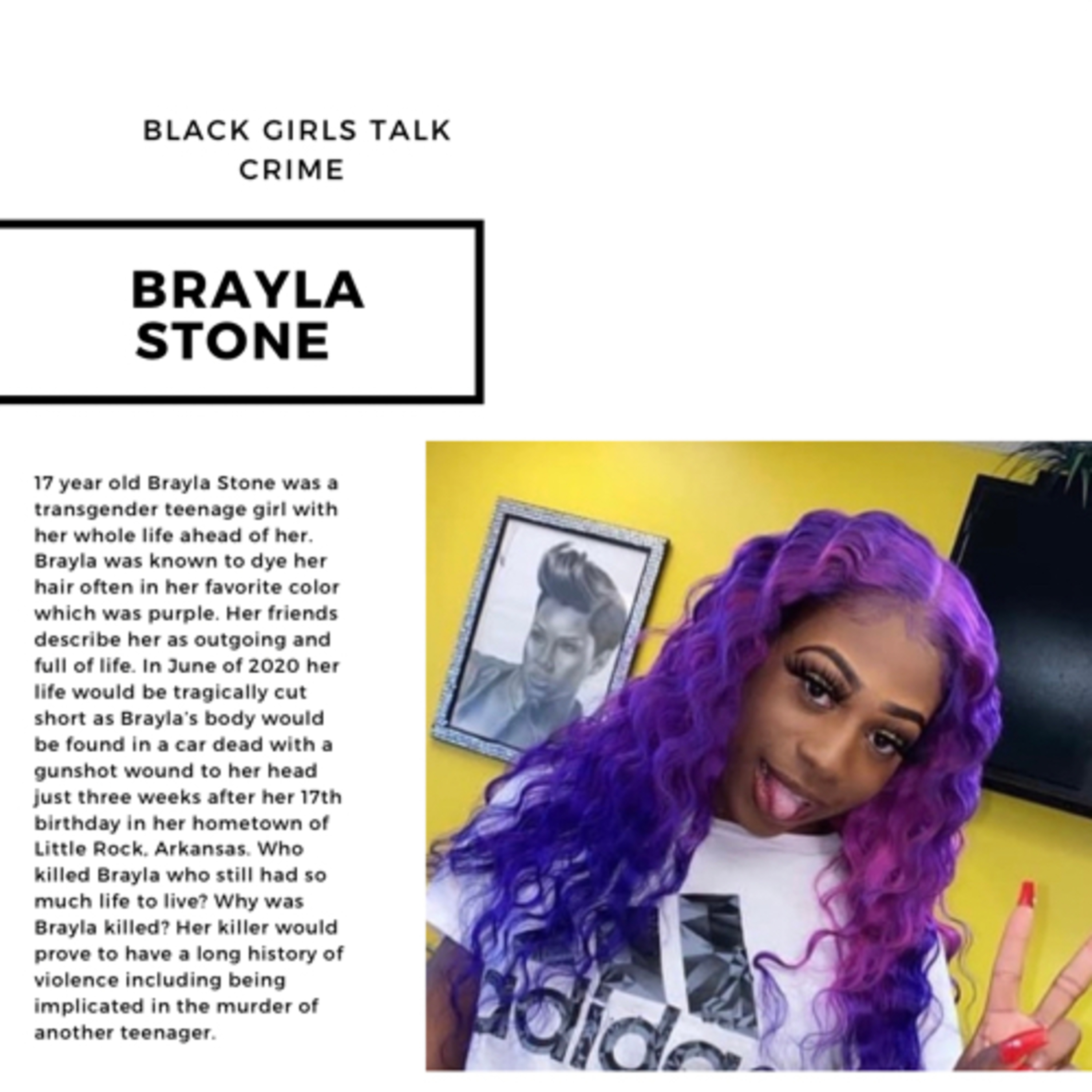 17 year old transgender girl Brayla Stone who is described as being the life of the party is found dead with a gunshot wound to her head in the Summer of 2020. Police wonder who would want to kill someone so young with so much life to live and why? Today we tell her story.