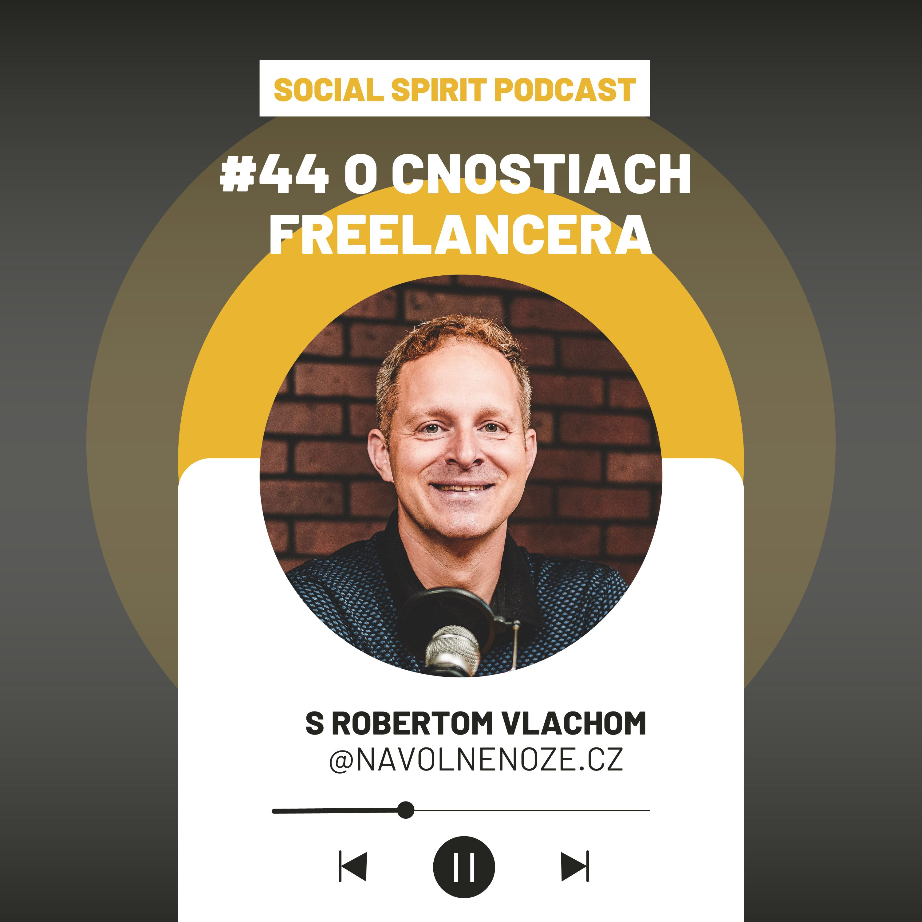 Dnešná epizóda je skutočne nabitá hodnotnými informáciami pre všetkých freelancerov a tých ktorí zvažujú podnikanie na voľnej nohe. Výnimočná je ale aj kvôli špeciálnemu hosťovi, ktorého som mala na zozname už od vzniku Social Spirit podcastu. Je ním Róbert Vlach, biznis konzultant, zakladateľ českej a európskej komunity freelancerov a autor knihy Na voľnej nohe, ktorá je bibliou každého freelancera.