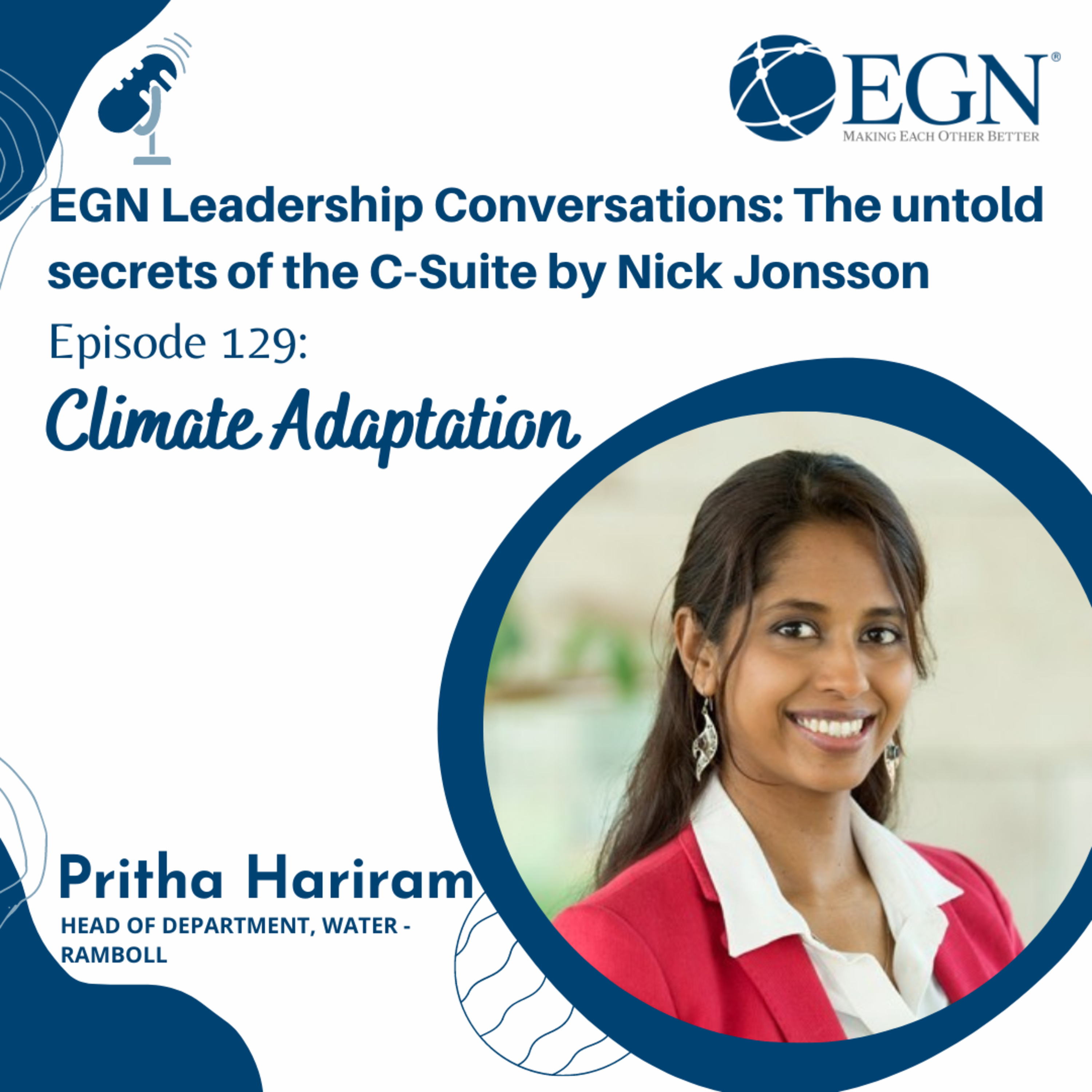 This is episode #129 of EGN Leadership Conversations: The untold Secrets of the C-Suite by Nick Jonsson and we are pleased to have with us Pritha Hariram, Head of Department, Water - Ramboll