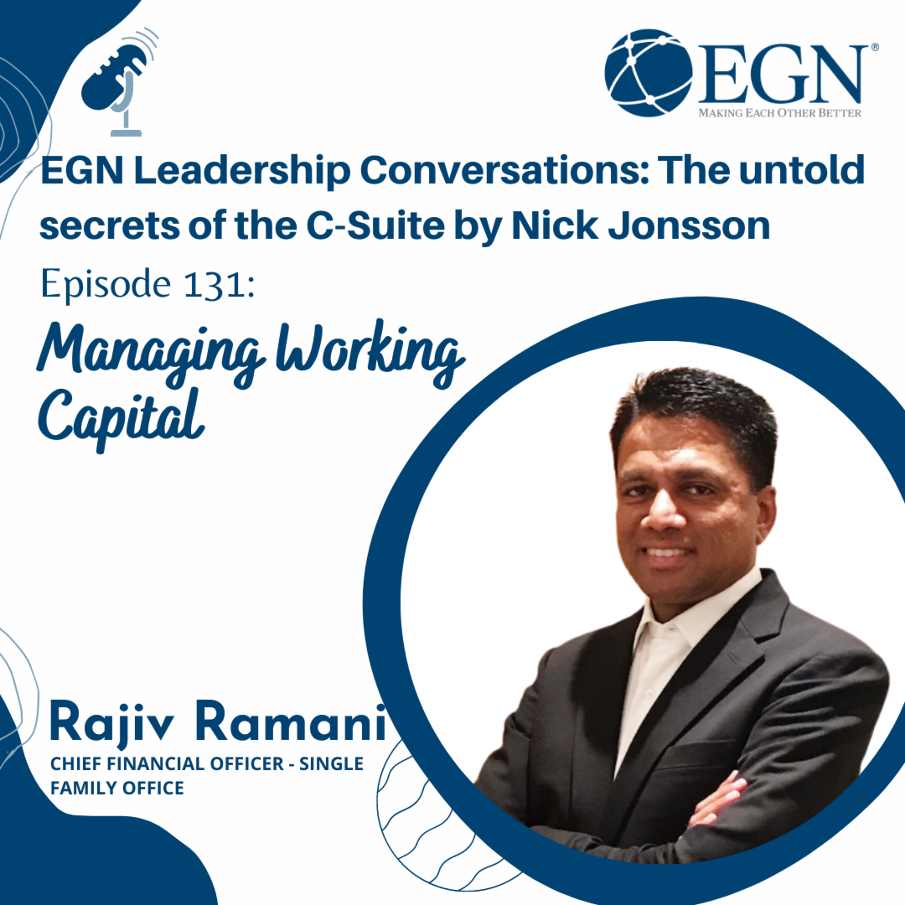 This is episode #131 of EGN Leadership Conversations: The untold Secrets of the C-Suite by Nick Jonsson and we are pleased to have with us Rajiv Ramani, Chief Financial Officer - Single Family Office.