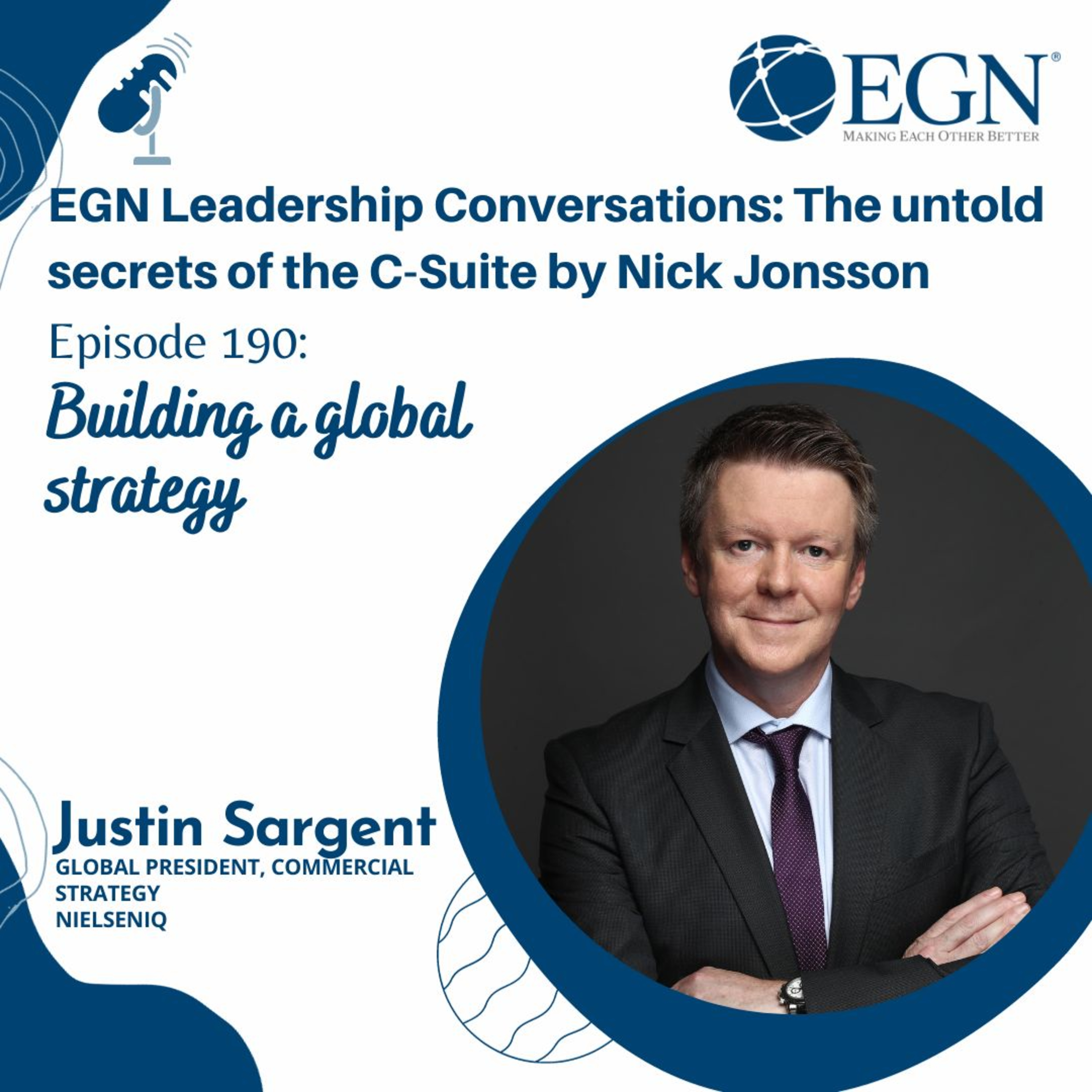 This is episode #190 of EGN Leadership Conversations: The untold Secrets of the C-Suite by Nick Jonsson and we are pleased to have with us Justin Sargent , Global President, Commercial Strategy -NielsenIQ , sharing his insight on building a global strategy.