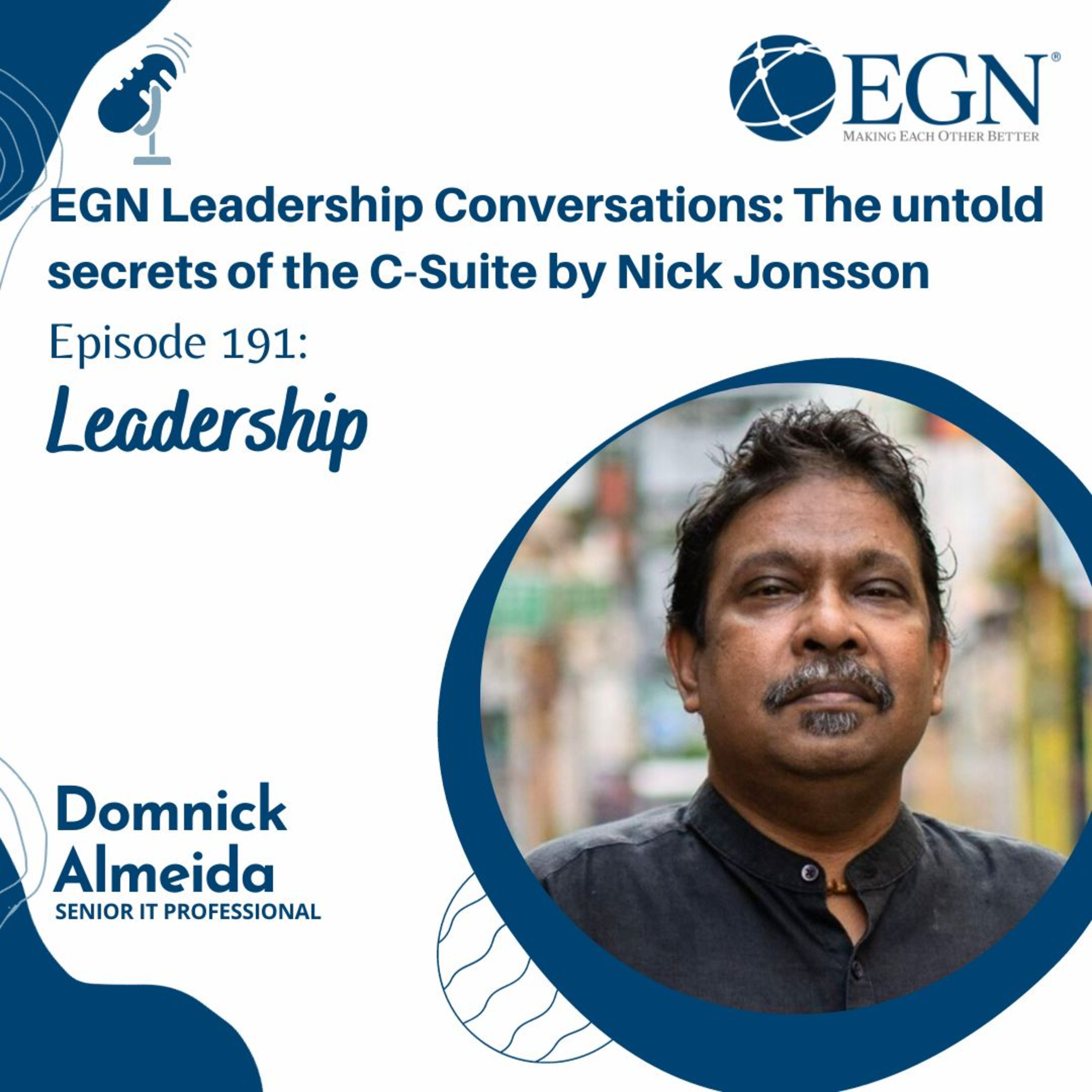 This is episode #191 of EGN Leadership Conversations: The untold Secrets of the C-Suite by Nick Jonsson and we are pleased to have with us Domnick Almeida, Senior IT Professional, sharing his insight on leadership.