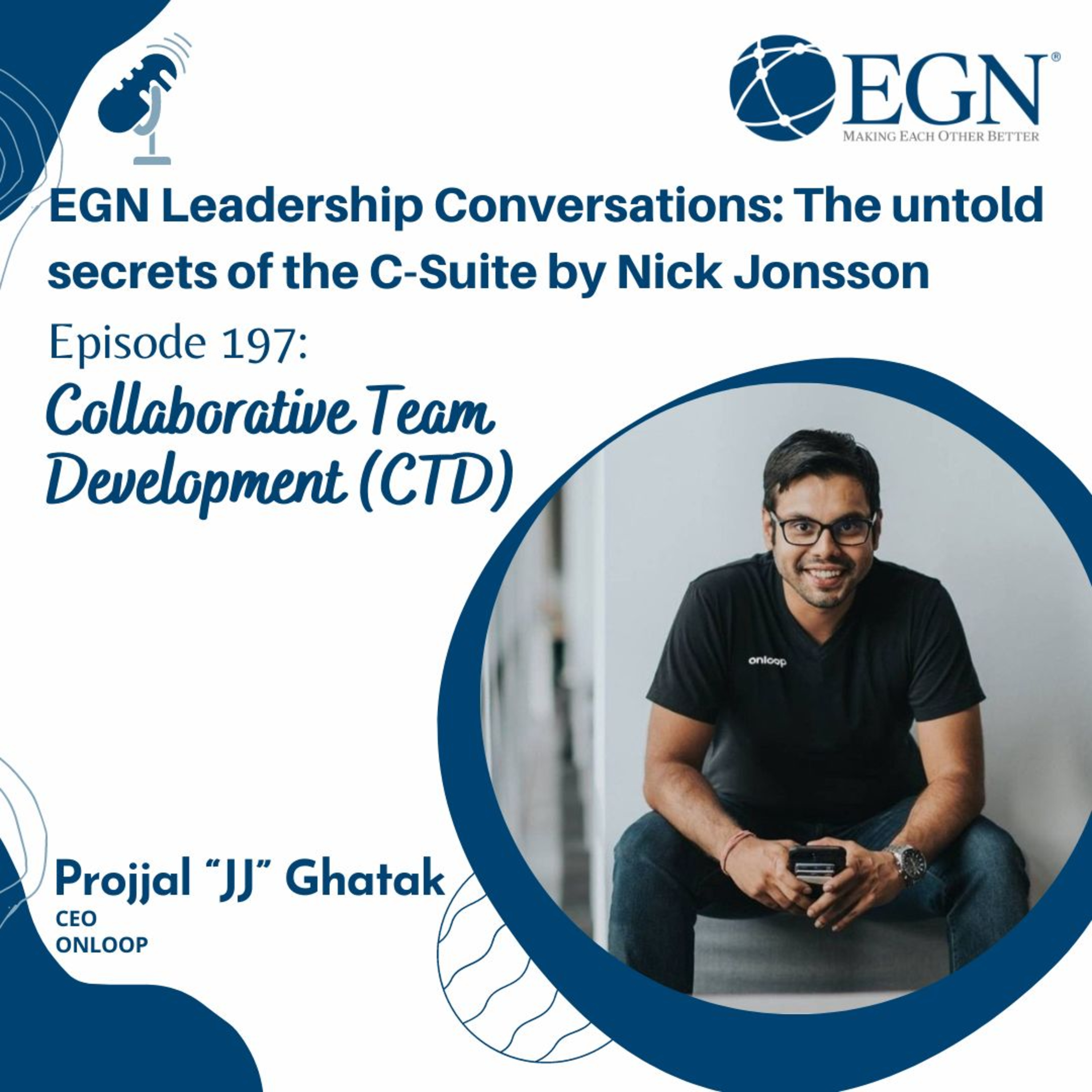 This is episode #197 of EGN Leadership Conversations: The untold Secrets of the C-Suite by Nick Jonsson and we are pleased to have with us Projjal “JJ” Ghatak, CEO of OnLoop , sharing his insight on collaborative team development [CTD].