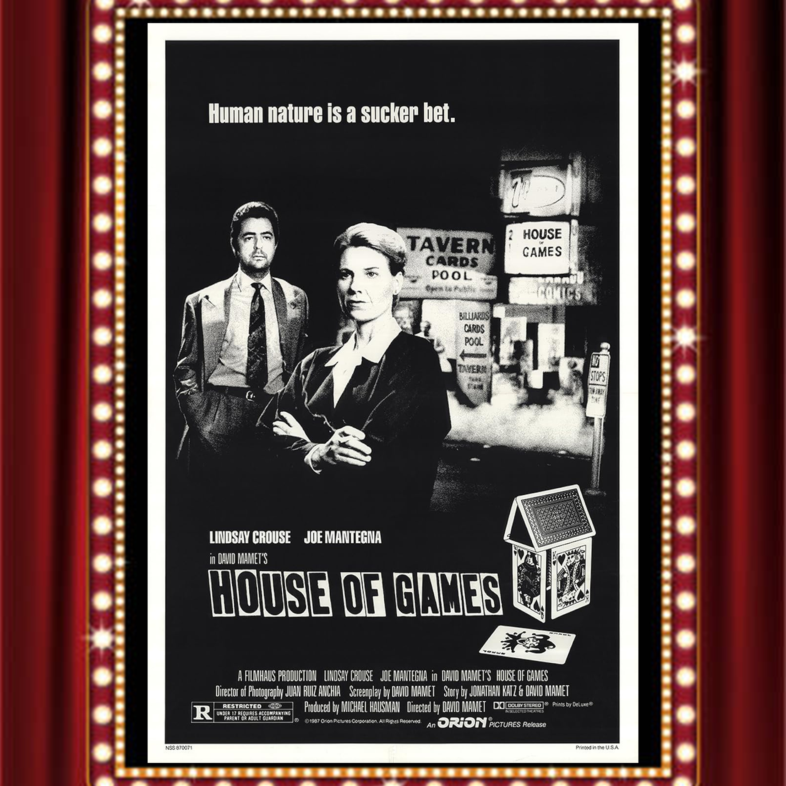 On this episode of Drive-In Double Feature, Nathan and Ryan dive into David Mamet’s slick and cerebral directorial debut, House of Games (1987). When a psychologist gets pulled into the seductive world of con artists, things spiral into a tense game of manipulation and trust. The hosts break down Mamet’s trademark dialogue, the film’s layered cons, and how this noir-inspired thriller keeps viewers on their toes until the final moment. Is it all just smoke and mirrors? Tune in and find out.