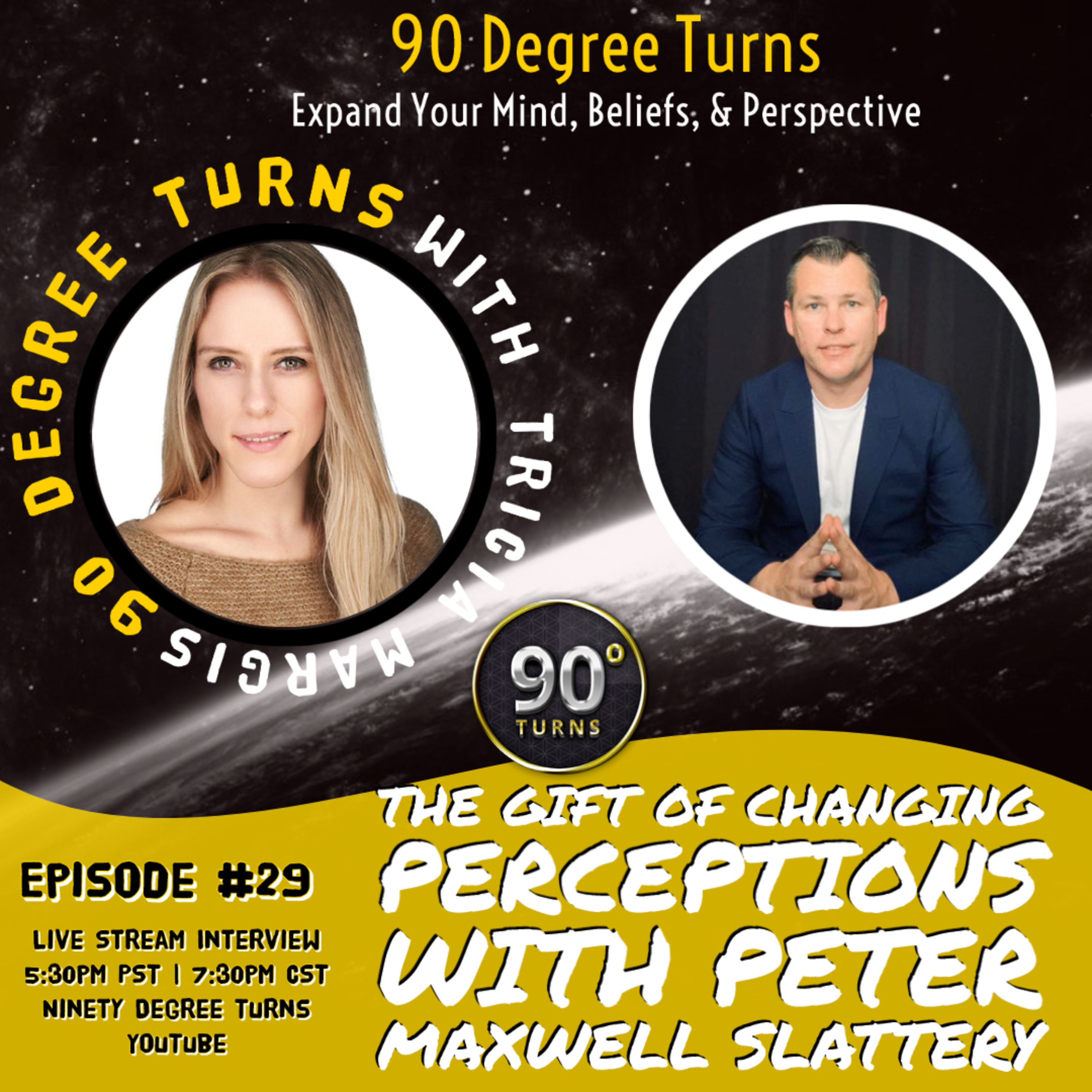 Ascension Summit 2021- Colorado Springs, CO Aug 12 -15 - Grab Your Early Bird Tickets by June 30th! https://ascensionsummit2021.com/?ref=ninetydegreeturns In Episode 29 we have Peter Maxwell Slaterry on the show tonight coming at you via livestream. We'll dive into the gift that is changing our perceptions as we unpack how negative experiences can actually end up being positive in grand scheme of things as well as how to find joy and happiness during 2021! Peter Maxwell Slattery is an international bestselling author, speaker and educator, assisting with spiritual development, self discovery, connection to spirit guides, soul family, purpose, balance and joy to the earthly experience and God within. His E.T experiences started at an early age and continue to this day, with hundreds of witnesses to events. Pete’s experiences have been detailed in an overwhelming amount of photographic and video evidence related to UFOs, otherworldly Beings, and apparitions, which have been analyzed by Jason Gleaves (Ex-U.K. Air Force and Aerospace), and remote viewed by John Vivanco (The Psychic Spy) and his group, which has worked for the FBI. Pete's story also includes physical trace evidence. Pete’s experiences with extraterrestrials have led him to help people and groups make ET contact themselves, in addition to healing and tapping into their own abilities. He has appeared on History Channel's Ancient Aliens and Paranormal Caught On Camera, Channel 7's Prime News, and Sunrise, and many other international television programs. He has made worldwide news, been in numerous documentaries, been written about in magazines, and has been a guest on mainstream radio shows, including Coast-to-Coast. Pete is also a musician and, as a filmmaker, he has made a number of documentaries on the subject of E.T's. He was featured in The Cosmic Secret, which was a number one documentary film on iTunes in 2019, and James Gilliland's Contact Has Begun 2. Also, his UFO footage was featured in Close Encounters of The 5th Kind, which was also a number one film on iTunes in 2020. Peter Maxwell Slattery continues to open the world up to the greater reality that "We are not alone" and that "We are all amazing, powerful Beings." Connect With Peter: https://www.petermaxwellslattery.com/ https://www.ecetiaustralia.org/ Ninety Degree Turns Socials: Telegram: t.me/ninetydegreeturns Instagram: https://instagram.com/ninetydegreeturns Facebook: https://bit.ly/2QGnE38 Youtube: https://www.youtube.com/channel/UC6svOGsElnkR4EampGdsrbA Twitter: https://twitter.com/triciamargis Paypal: https://www.paypal.com/paypalme2/tricia90degreeturns Gab: https://gab.com/triciamargis Rumble: Coming Soon Ninety Degree Turns appreciates your support and hope you enjoy this program. If you're interested in sharing this content or donating via paypal, please feel free to do so. Your support is appreciated in every way and helps allow me to continue to bring you awesome videos!