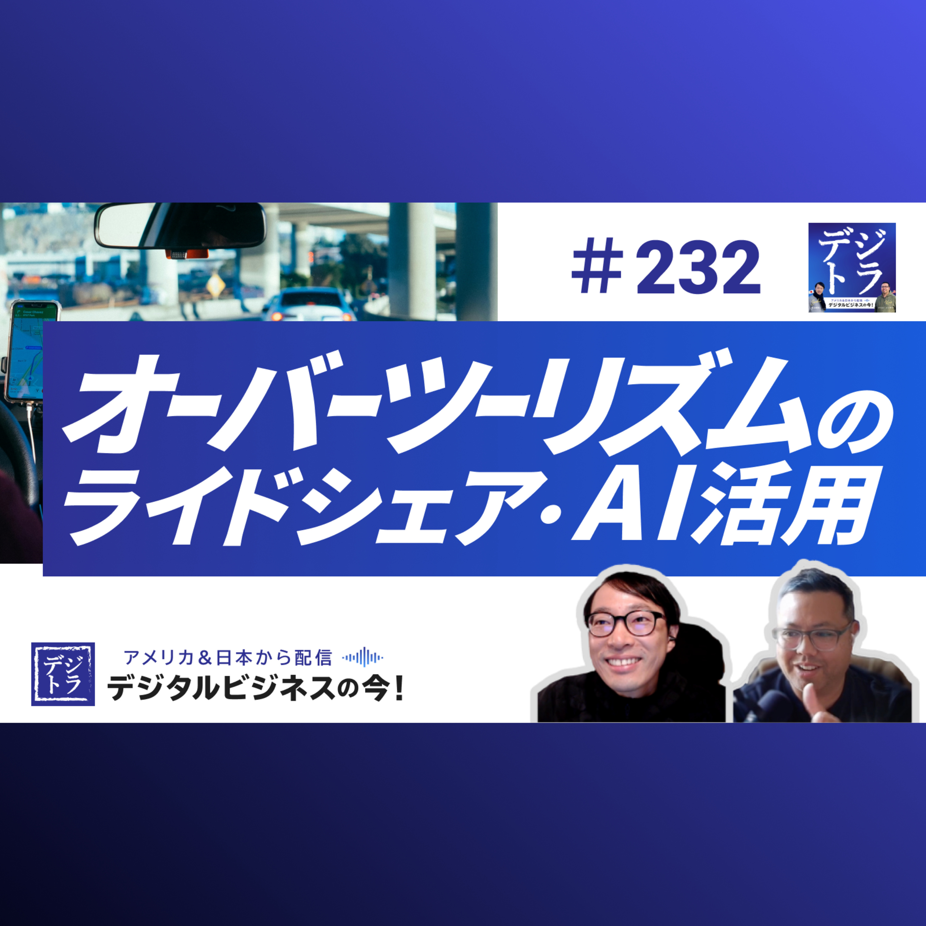 タクシー不足が叫ばれる都市部、新宿。季節ごとに渋滞が悪化する軽井沢。観光の需要は拡大する一方で、交通インフラは追いつかない。本エピソードでは、旅行会社が参入するライドシェアの可能性や、AIセンサーを活用した交通インフラの最適化、さらにはドライバーが広告収入を得られる新たなビジネスモデルまで、世界と日本の最新事例をもとに議論を展開します。