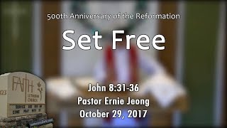 10/29/2017 -- John 8:31-36 -- Pastor Ernie Jeong https://youtu.be/MW0dCZjvWCc 500th Anniversary of the Reformation Scripture Readings Revelation 14:6-7 Psalm 46 Romans 3:19-28 John 8:31-36