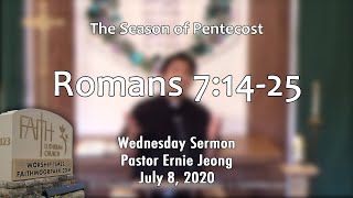 7/8/2020 -- Romans 7:14-25 -- Pastor Ernie Jeong Sermon Video https://youtu.be/H8XSdmCLKbU Full Worship Service https://youtu.be/_WUrH4MgggE Scripture Readings Psalm 145:1-14 Romans 7:14-25a