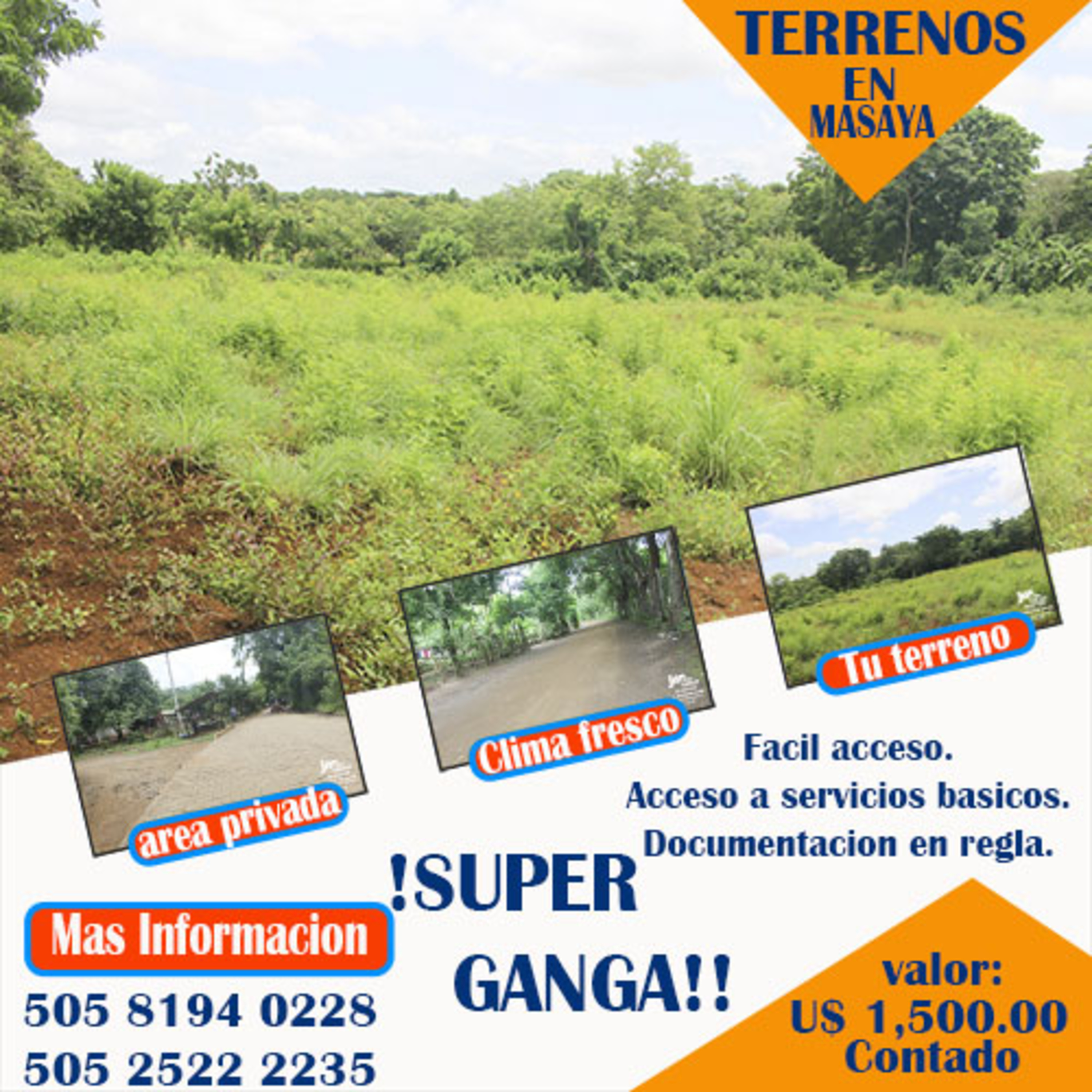 SE VENDEN LOTES DE TERRENOS EN MASAYA.