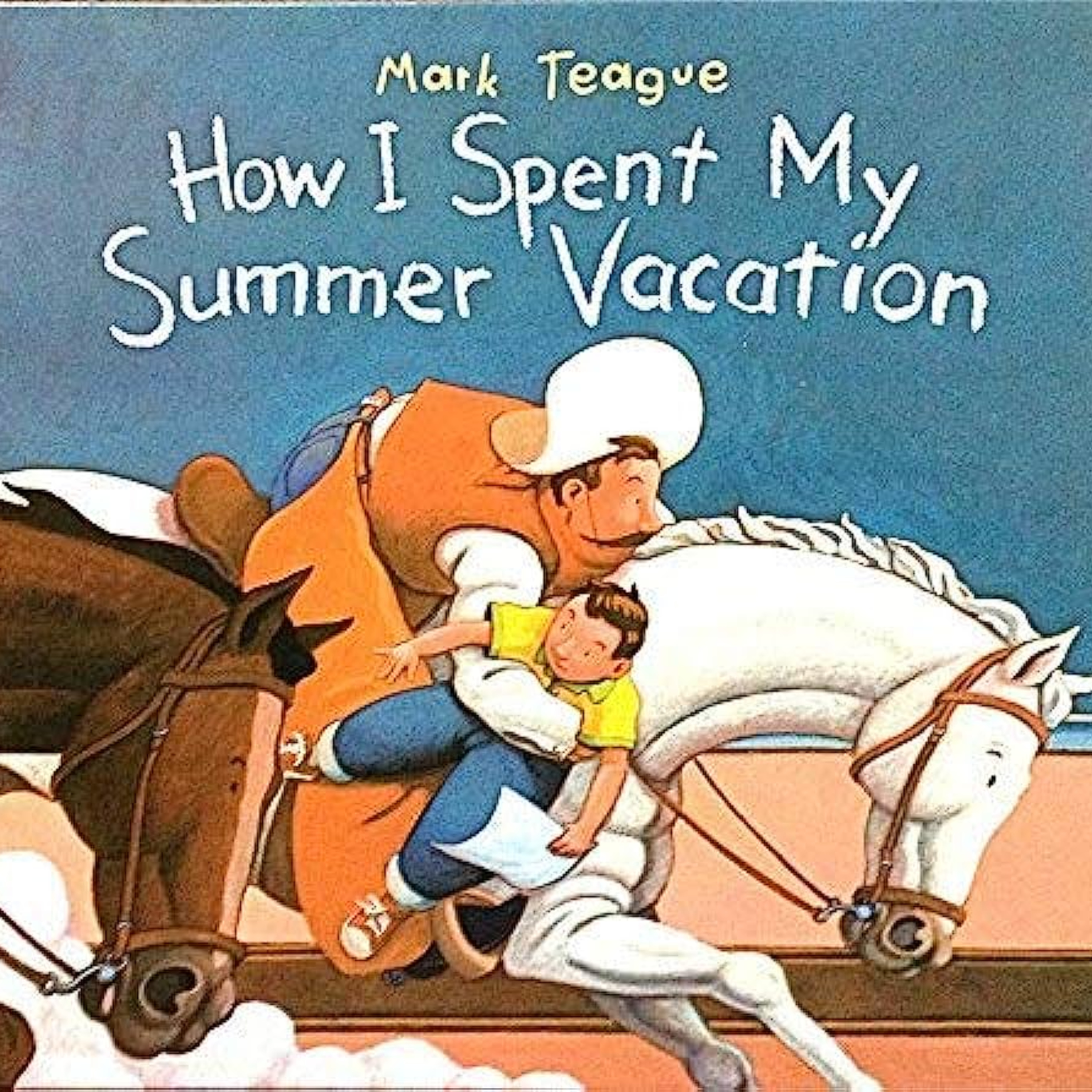 Illustrated in full color. In a wildly funny twist on the annual "How I spent my summer vacation" school-essay ritual, Mark Teague shakes up a dull classroom with a young student's imaginative account of his adventures in the Wild West. Most kids go to camp, or Grandma's house, or maybe they're stuck at home all summer. Not Wallace Bleff. He was supposed to visit his Aunt Fern. Instead, Wallace insists, he was carried off by cowboys and taught the ways of the West--from riding buckin' broncos to roping cattle. Lucky for Aunt Fern, he showed up at her house just in time to divert a stampede from her barbecue party! Perfect for back-to-school read-alouds, here's a western fantasy with sparkling illustrations and enough action to knock kids' boots off!