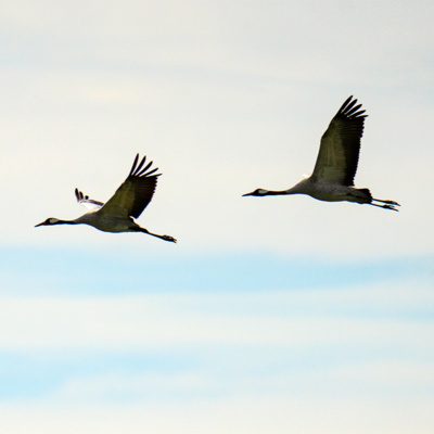 Kraniche. Fast so etwas wie die Wappenvögel der Region.