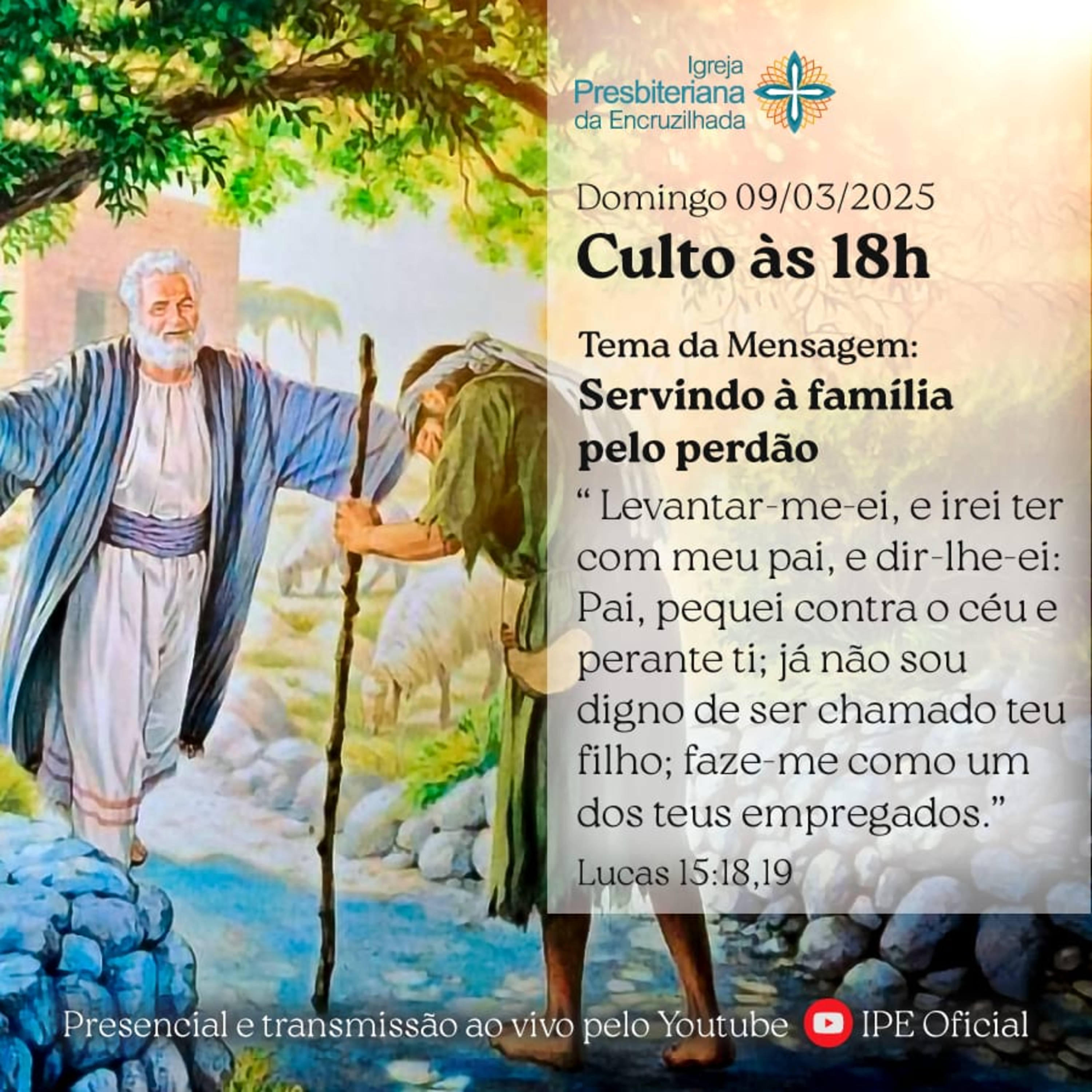 "SERVINDO À FAMÍLIA PELO PERDÃO" pregação do Pr. Petrônio Tavares no culto vespertino transmitido ao vivo no domingo (09/03/2025) à noite (18h).