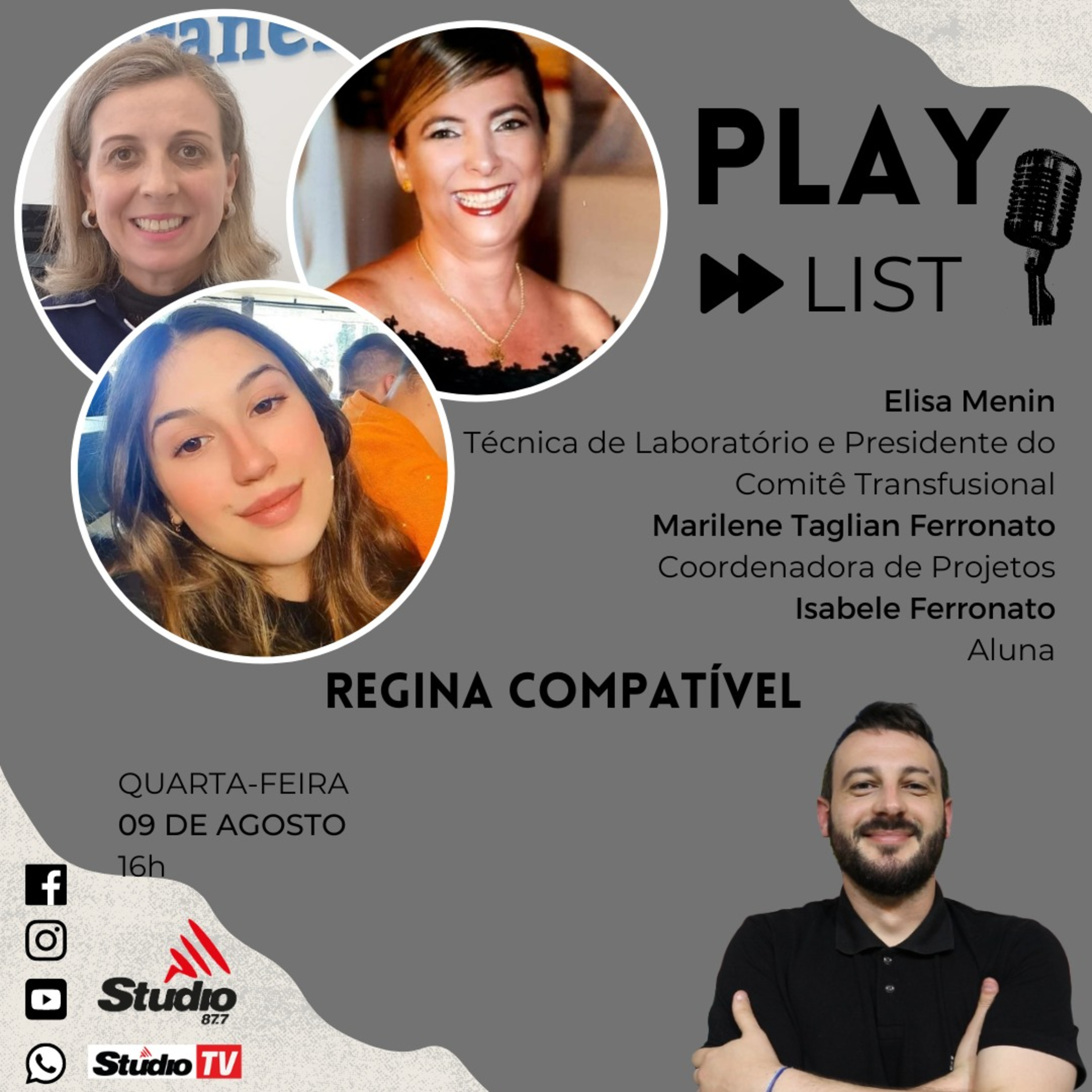 Pauta da tarde desta quarta-feira (09), fala sobre o Regina Compatível, campanha de doação de sangue que envolve Regina Coeli, Prefeitura de Veranópolis, Banco de Sangue de Caxias, entre outros parceiros. Acompanhe e saiba mais! #studio87fm #entrevista #regina #compatível #doação #solidariedade #informações
