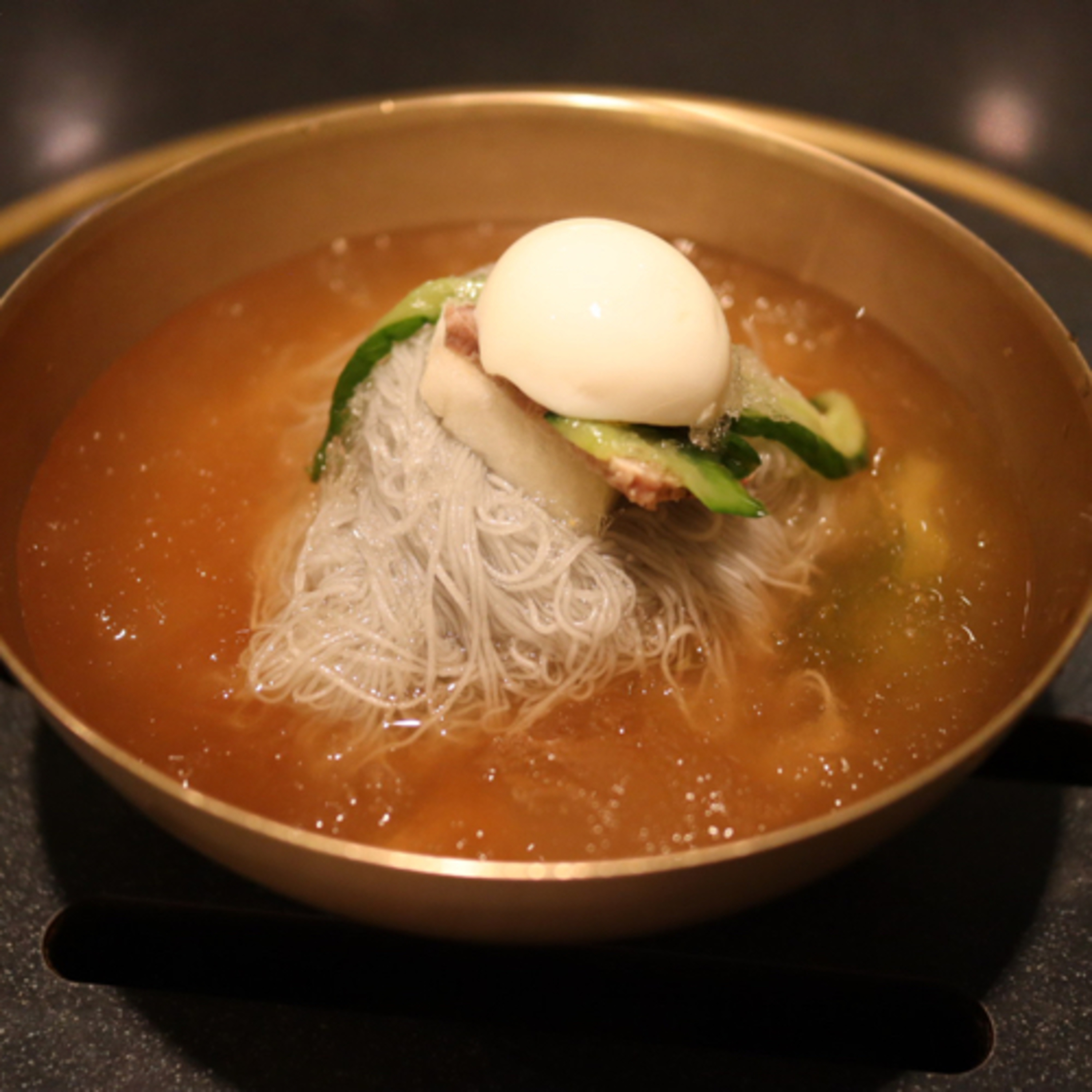 水冷麺(チョンギワ/赤坂) ・「嵐にしやがれ」で紹介 ・透き通ったスープの爽快な風味 ・ツルツルとした表面と芯にコシがある麺