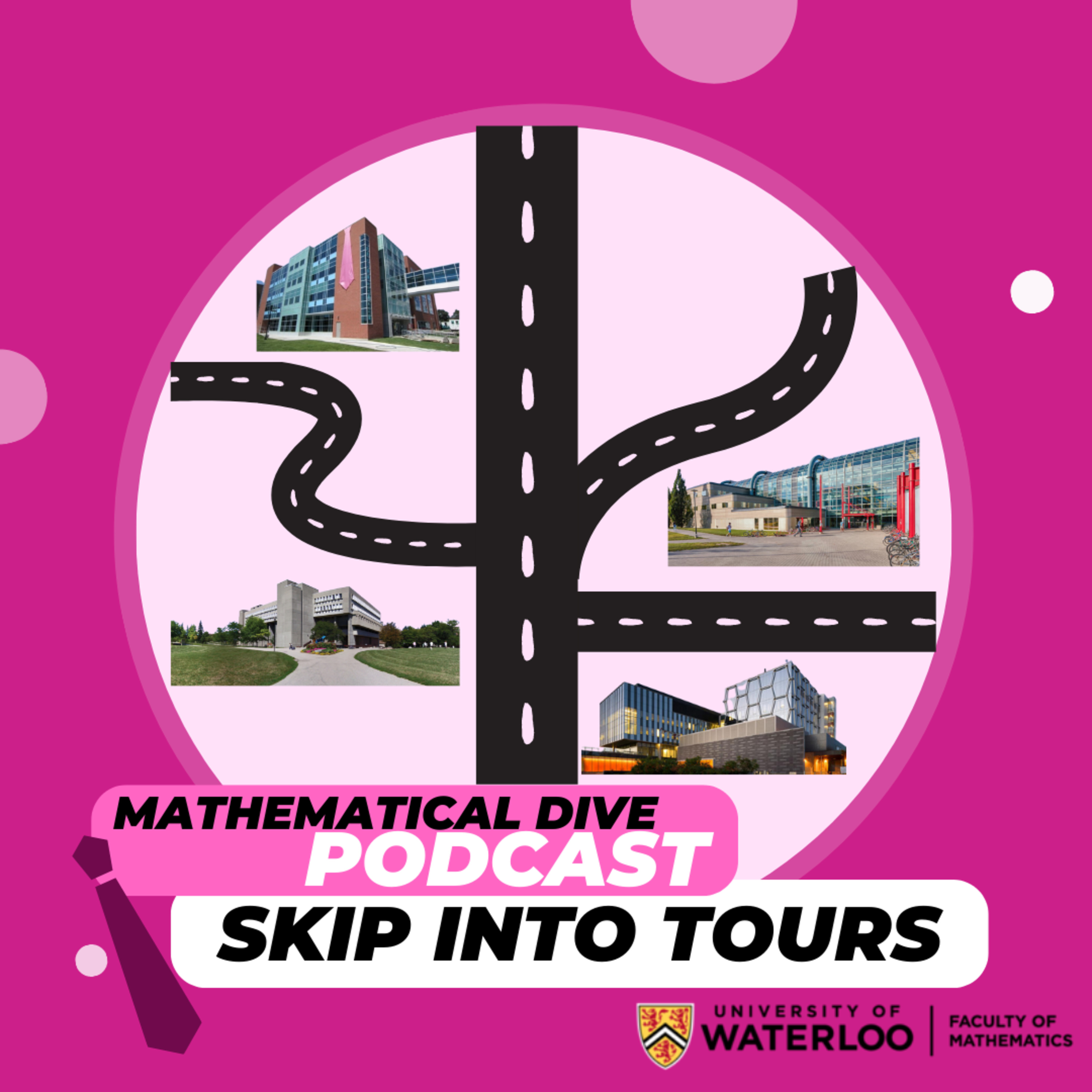 Have you heard the Legend of the Pink Tie? Wonder why the Davis Centre is so colourful? Learn about the history of our math buildings, as well as what currently goes on within them in this very special episode of Mathematical Dive! Join Josué and Michelle as they take listeners on a virtual tour through the three math buildings we have at the University of Waterloo. Below is a link to a pdf with a tour map so you can see exactly where each tour stop is within the buildings. Happy touring!