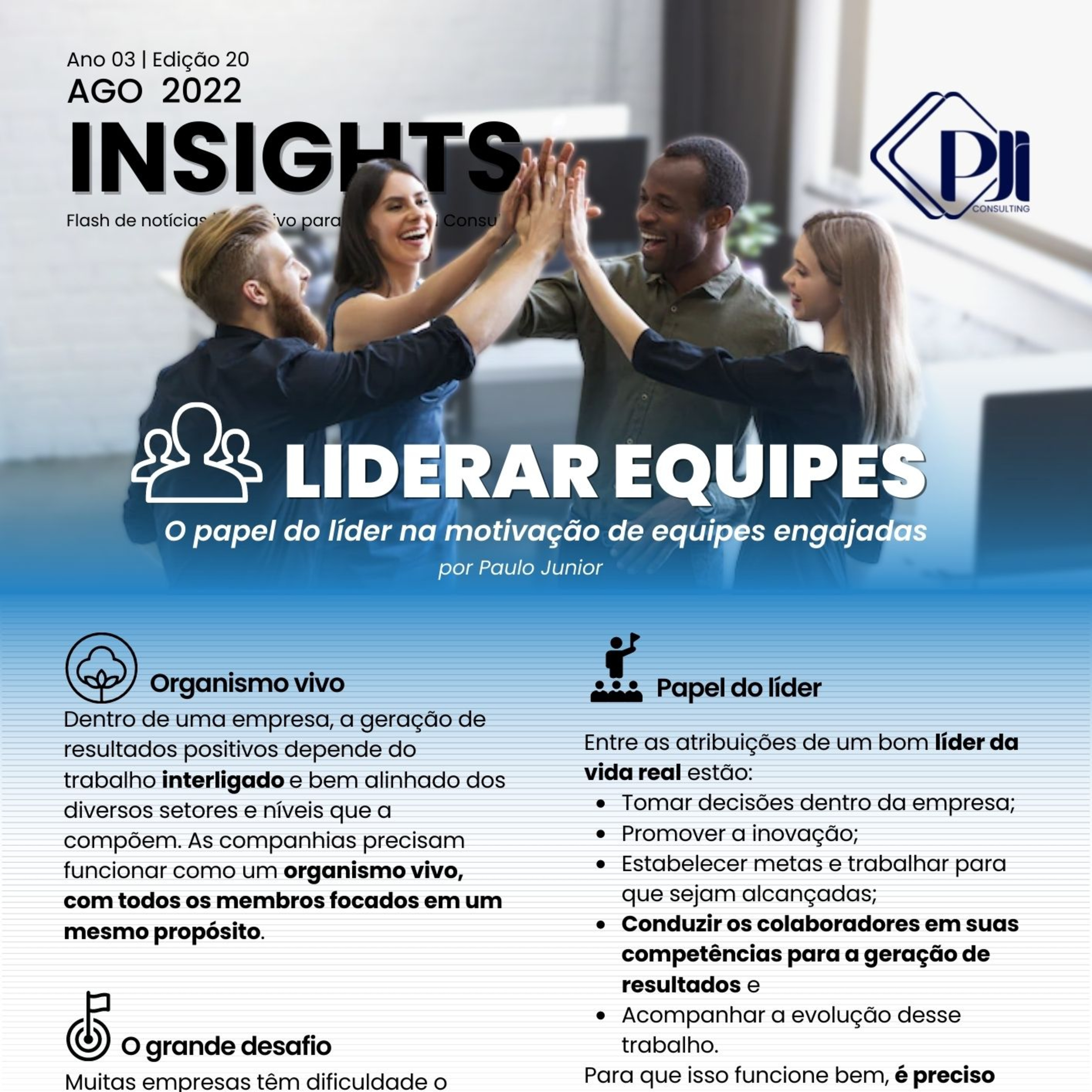 INSIGHTS PJI | LIDERAR EQUIPES - Edição 20 de 2022 | Quarta-feira, 17/08