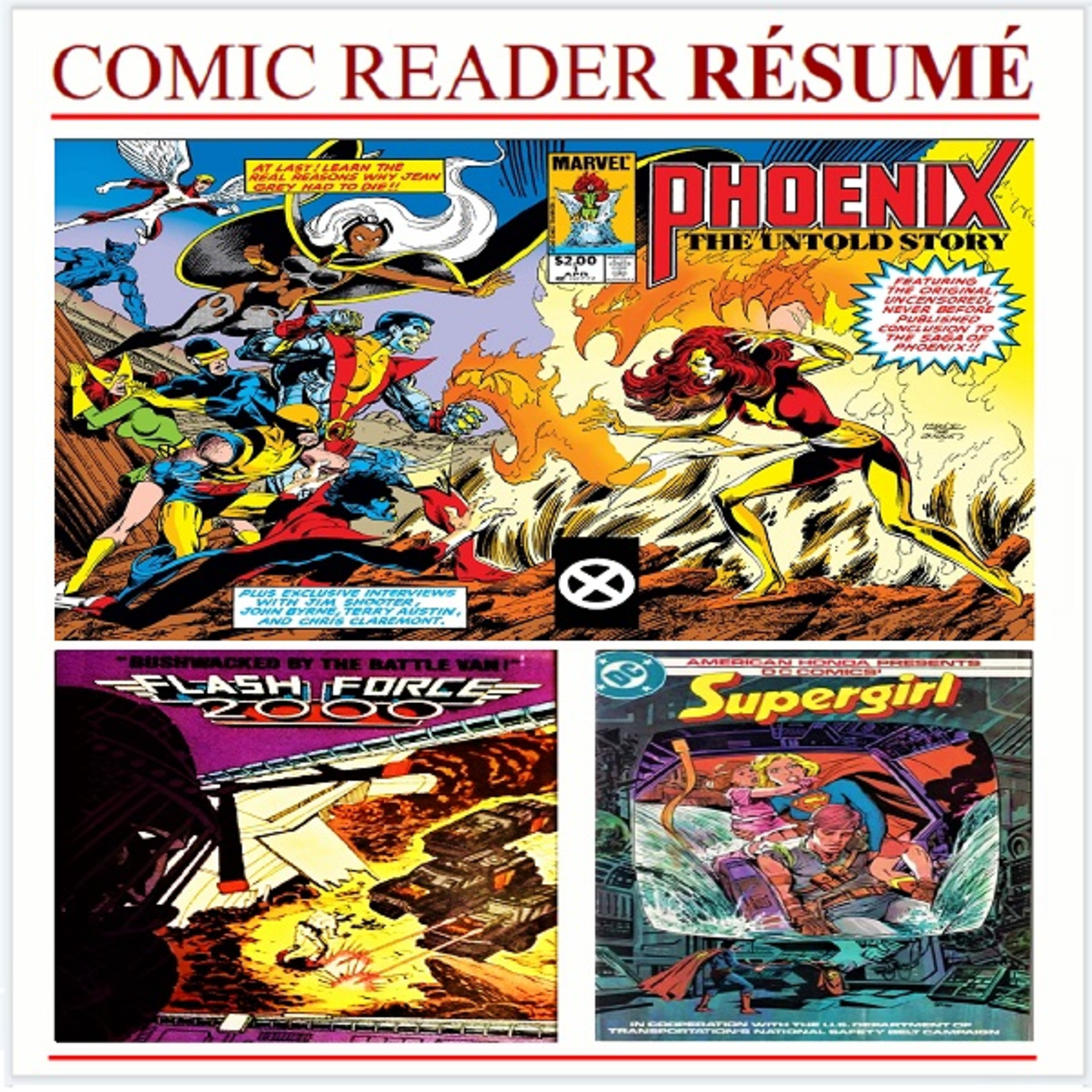 This episode includes Phoenix: The Untold Story #1, Flash Force 2000 mini-comics, American Honda Presents Supergirl #1, The Official Handbook of the Marvel Universe #15 and more! Plus a look at the 1982-1983 TV season...