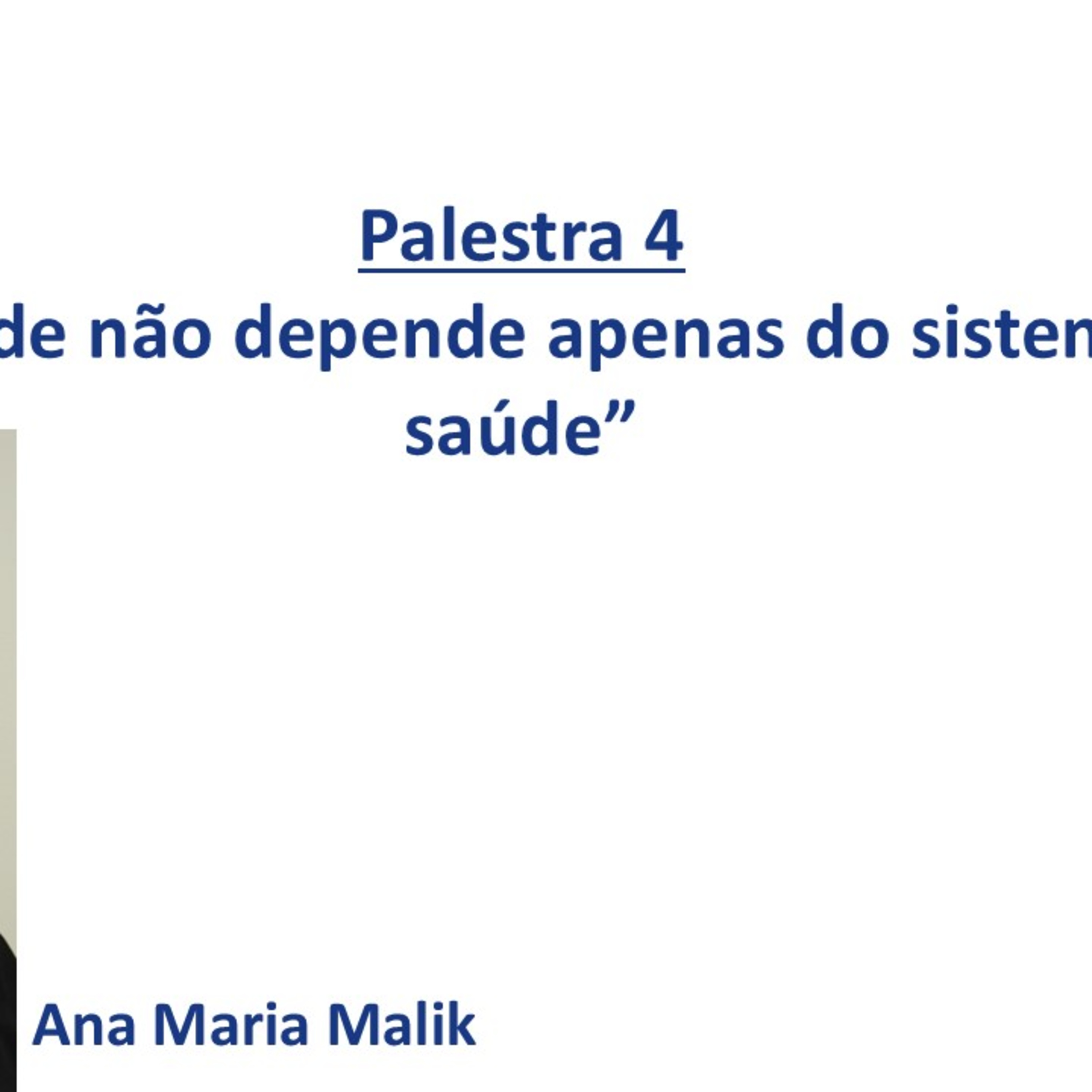 Esta é palestra 4: "A saúde não depende apenas do sistema de saúde”, por Ana Maria Malik