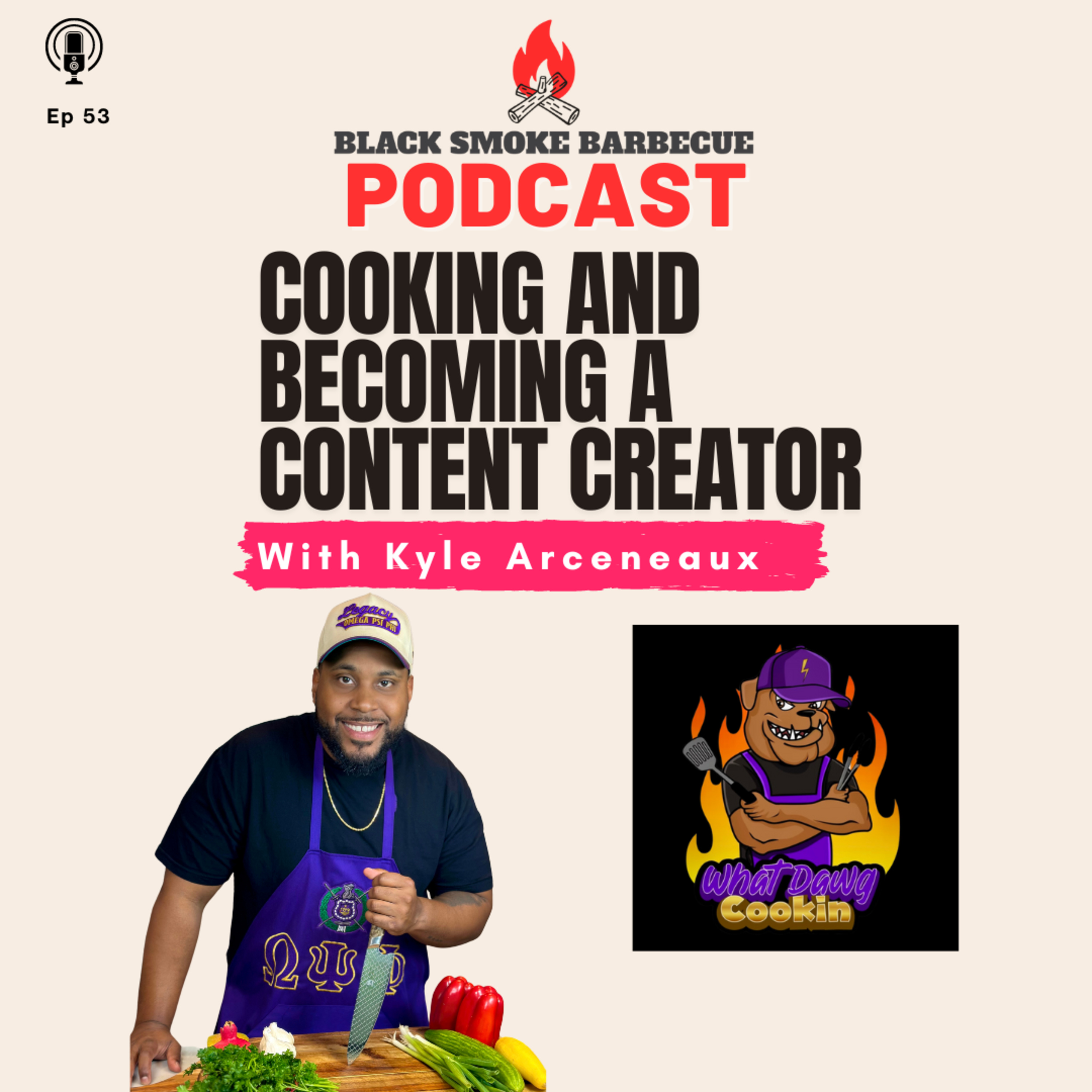 In this episode, Brandon, Charlie, Tee and Alton sit down with Kyle Arceneaux of What Dawg Cookin' as he shares his journey into cooking and his passion for bringing people together through food. He specializes in gumbo and shrimp and grits, incorporating the flavors of his Louisiana roots.