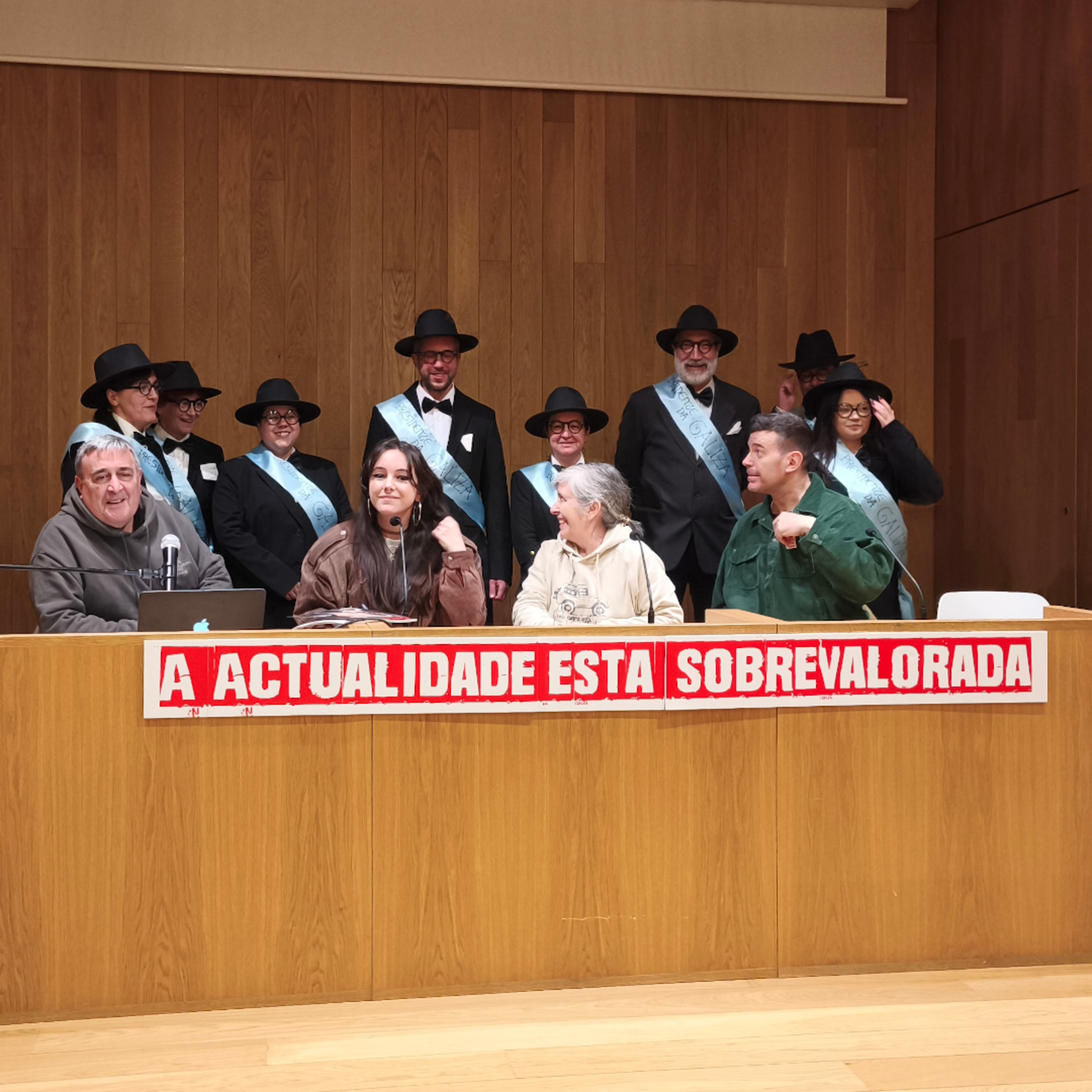 Conseguimos un dos nosos soños: actuar en directo (aínda que sexa nun cárcere). Ana Luísa Bouza, Marta Otero Mayán, Xosé Manuel Pereiro e Lois Pérez (no papel de Antón Losada) estivemos rodeados dun público amigo e rebuldeiro e dunha chea de Castelaos (que resultaron ser os concelleiros do BNG). Comparamos os cárceres, as estacións de buses obsoletas e o falamos de dous fenómenos misteriosos: a Administración que non quere que lle dean cartos e o teléfono antiokupas ao que non chama xente que quere que a libren de okupas.