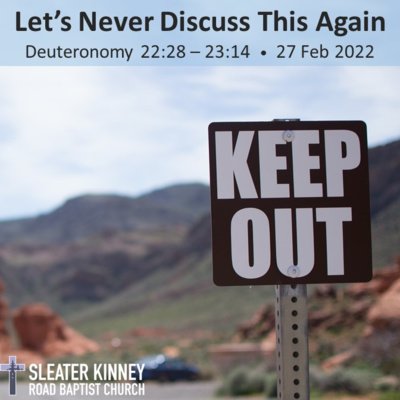 We tackle a portion of Scripture that nobody wants to talk about. If you want to know why, then just read Deut 23:1, 9-14 and you'll find out. We zoom out from the unpleasant details of this legislation and chat about the idea of ritual "uncleanness," and how the new and better with Christ is, well ... better. Pastor Tyler teaches through Deuteronomy 22:28 - 23:14.