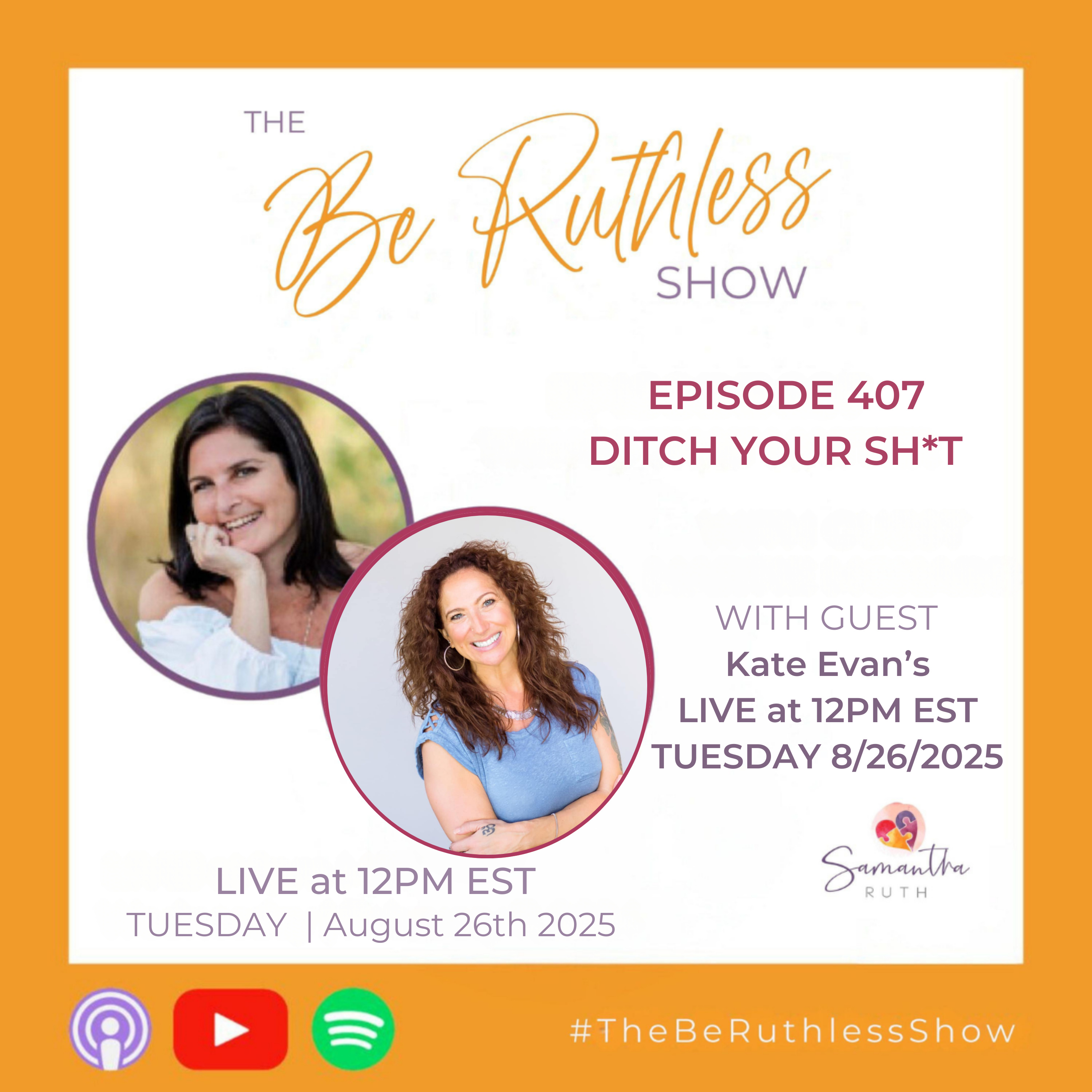 Today’s guest on The Be Ruthless Show discusses he importance of decluttering your emotional chaos! We’re talking Ditch Your Sh*t! With Kate Evans!
