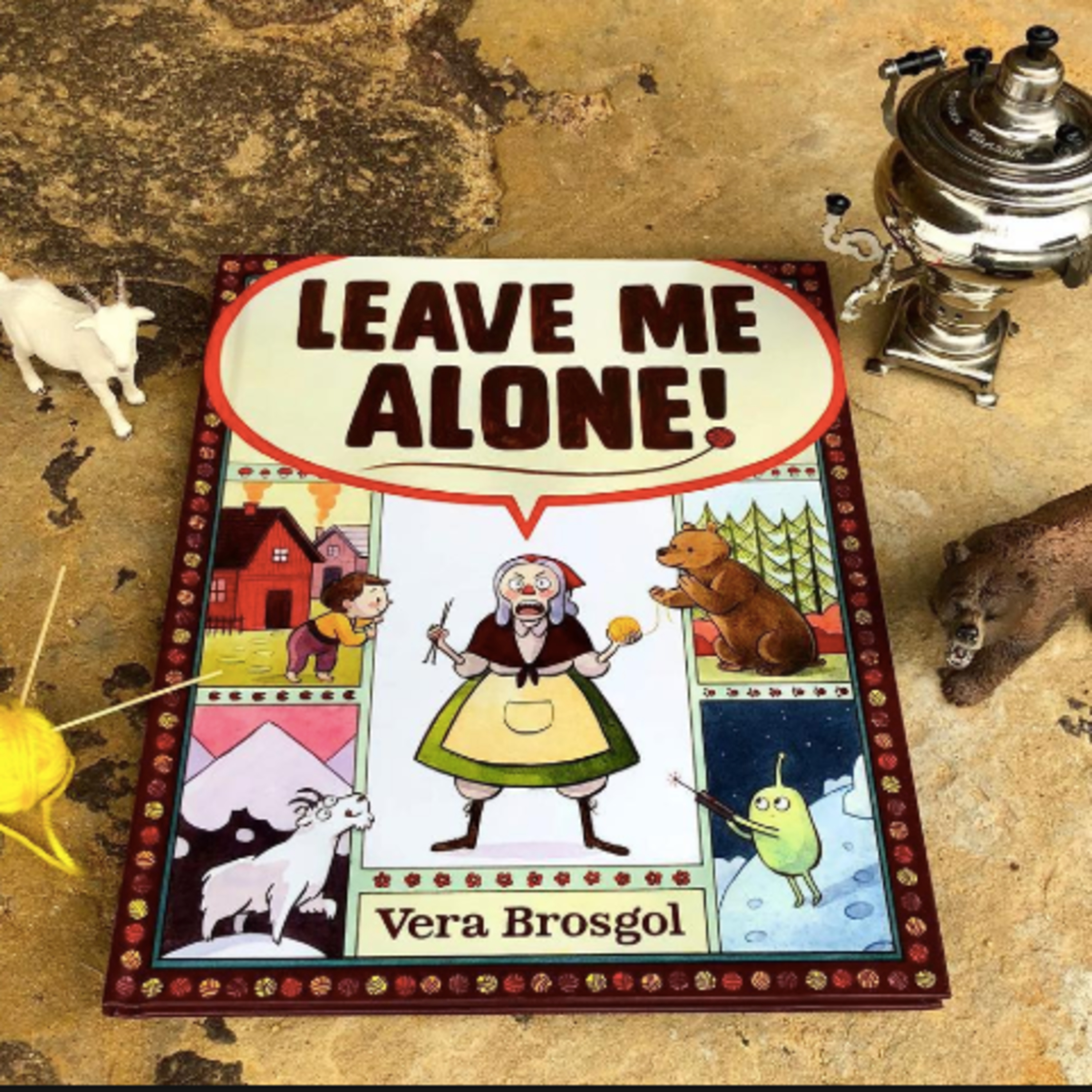 One day, a grandmother shouts, "LEAVE ME ALONE!" and leaves her tiny home and her very big family to journey to the moon and beyond to find peace and quiet to finish her knitting. Along the way, she encounters ravenous bears, obnoxious goats, and even hordes of aliens!