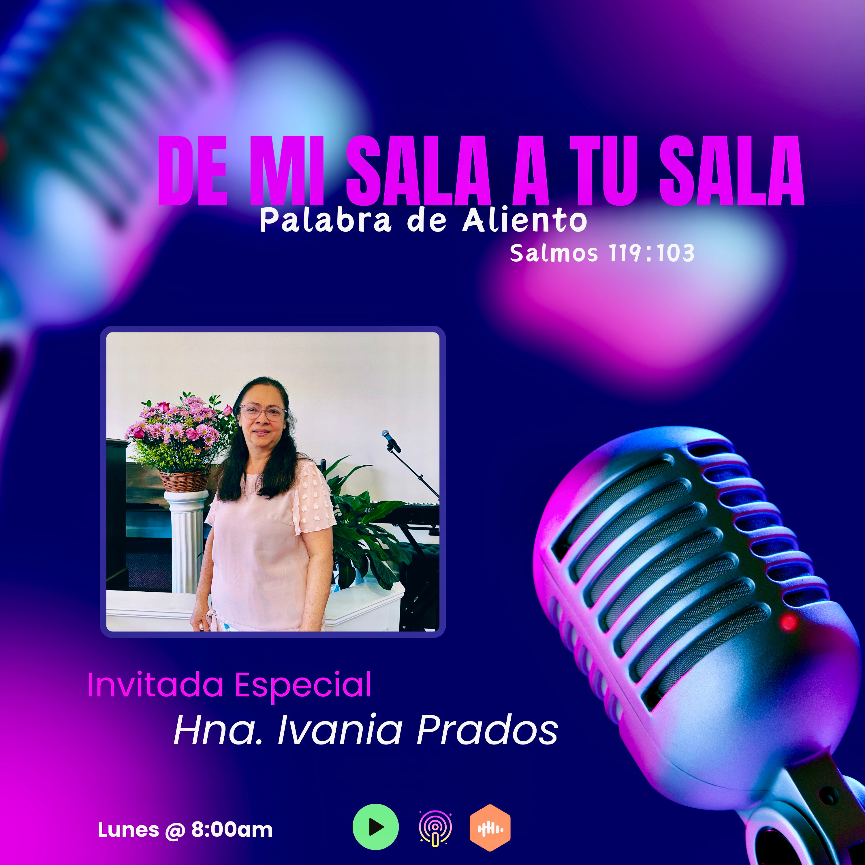 Bendiciones y Bienvenido a otro segmento De Mi Sala a Tu Sala Palabra de Aliento. En esta maƱana tenemos con nosotros a la Hermana Ivania Prados desde Maryland.
