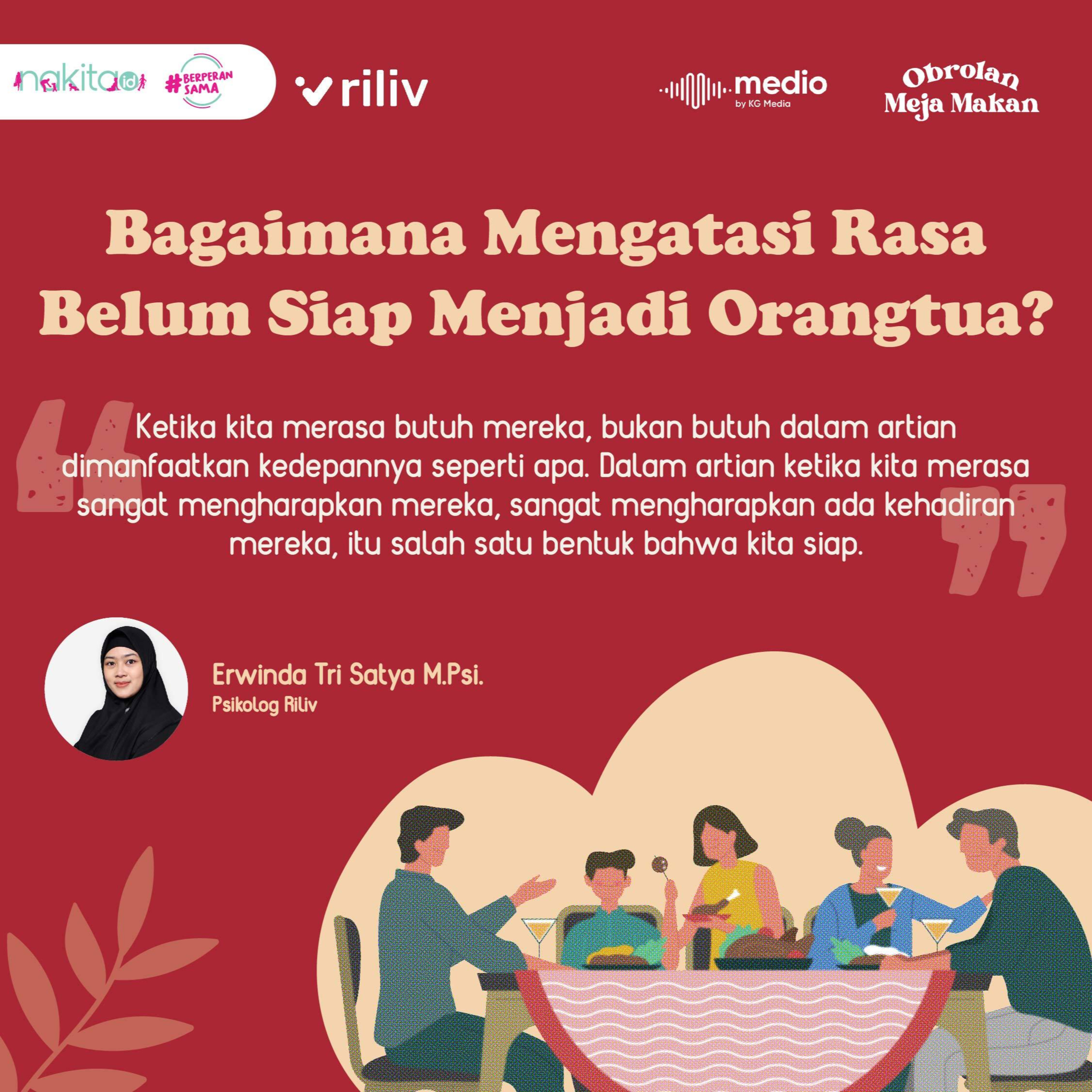 Menjalankan peran sebagai orangtua bukanlah hal yang mudah. Terlebih lagi jika mengingat bahwa tanggung jawabnya besar dimana bukan hanya ketika mengandung saja melainkan seumur hidup. Perasaan ragu dan khawatir untuk menjadi orangtua bisa saja hadir dan dirasakan. Lantas, bagaimana cara menghadapi perasaan belum siap menjadi orang tua? Yuk, langsung saja simak episode ini!