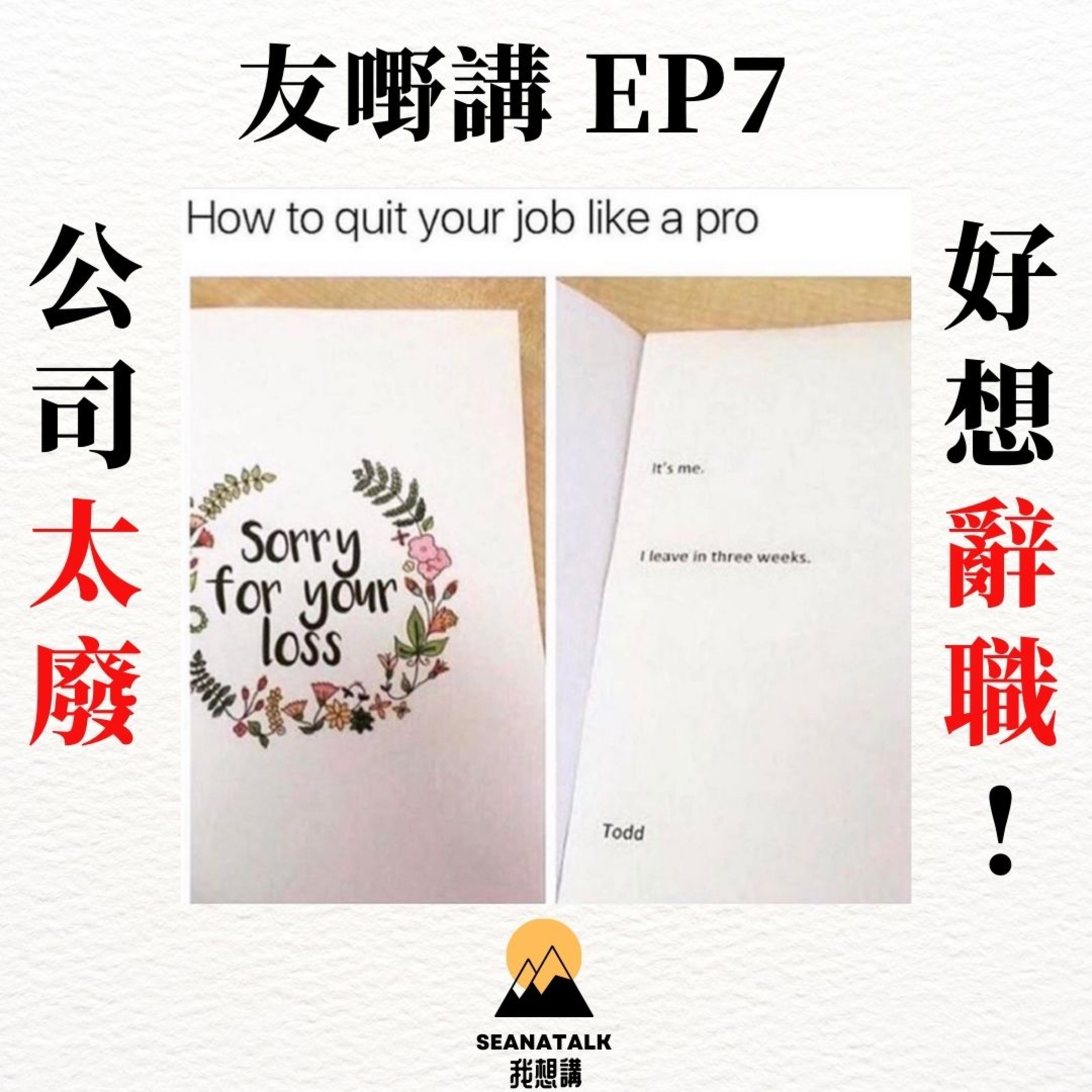 話說最近我去辭咗職去加拿大,而咁啱sakanaw 又因為公司嘅問題經歷佢第一次辭職,作為初出茅廬嘅社畜,當我哋因為各種原因要離職/好想辭職嘅時候,都有啲不知所措。究竟係面對衣家嘅不滿同未來嘅未知嗰陣,我地可以點樣自處?係瀟灑離開,定係委曲求全?