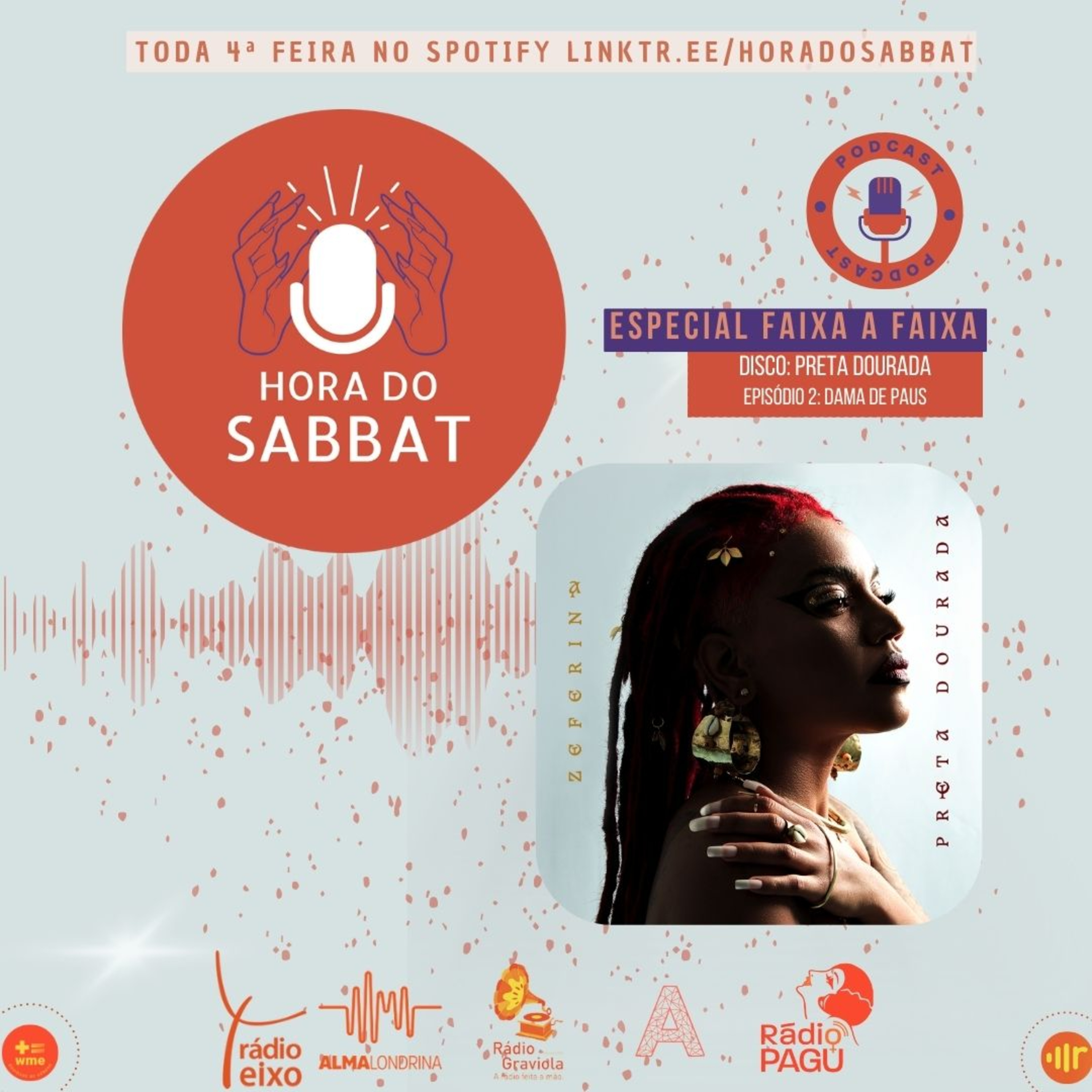 Hoje tem mais um episódio do podcast Hora do Sabbat especial - Faixa a Faixa disco Preta Dourada da cantora e mulher múltipla @zeferinaoficial .