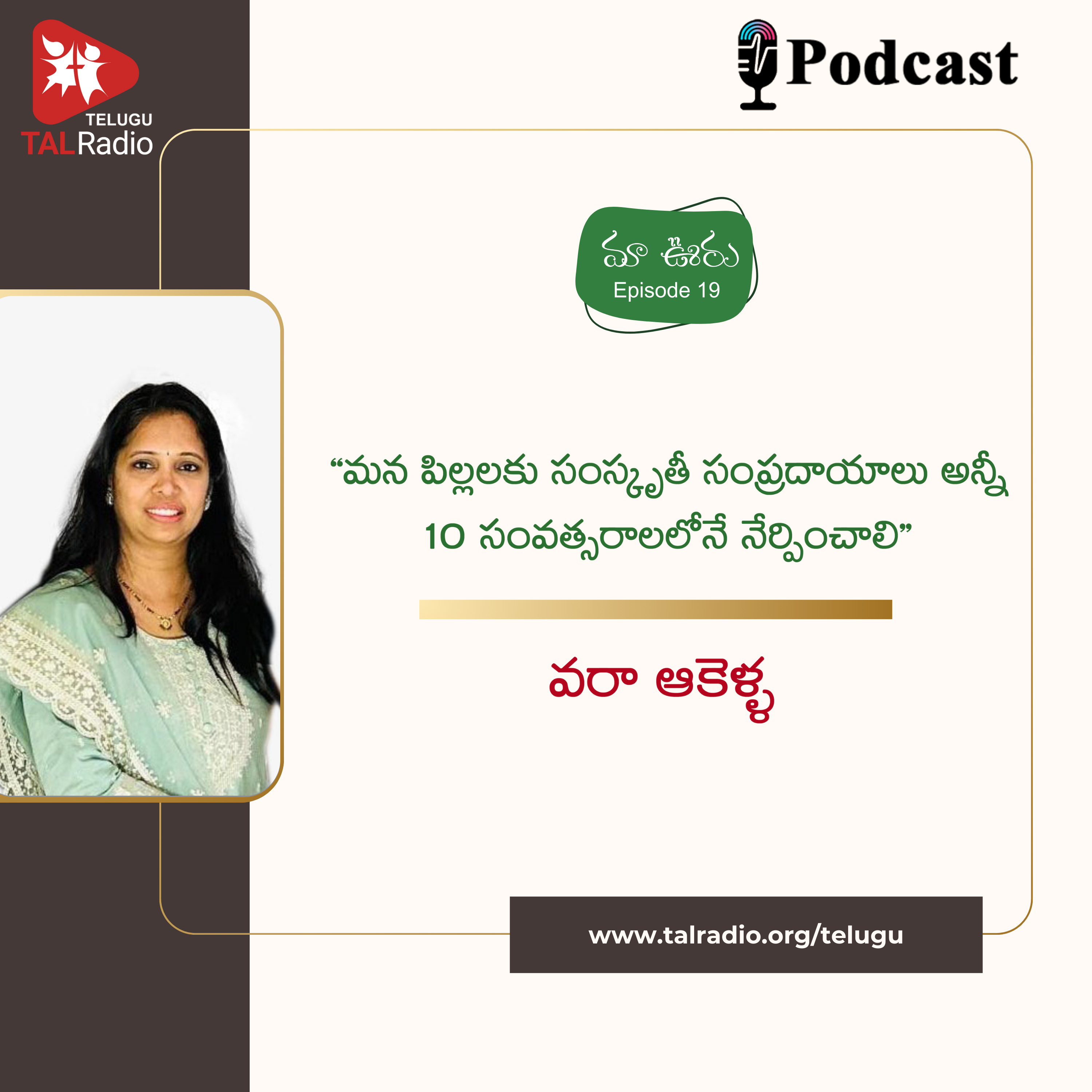 మా ఊరు కార్యక్రమంలో భాగంగా మనకు బాగా పరిచయం ఉన్న రియల్టర్ వరా ఆకెళ్ళ గారితో ముచ్చటిద్దాం.. కాకినాడలో పుట్టిన వరా గారి చిన్ననాటి విషయాలు, వారి తల్లితండ్రుల పెంపకం, వాళ్ళ నాన్న గారు, అటు ఉద్యోగంతో పాటు, సినీ సాహిత్యం లో ఎలా రాణించారు? కాకినాడ నుండి సియాటిల్ ప్రయాణం, ఇలా ఎన్నో జ్ఞాపకాలు ఈ పాడ్కాస్ట్ లో మనతో పంచుకుంటున్నారు.