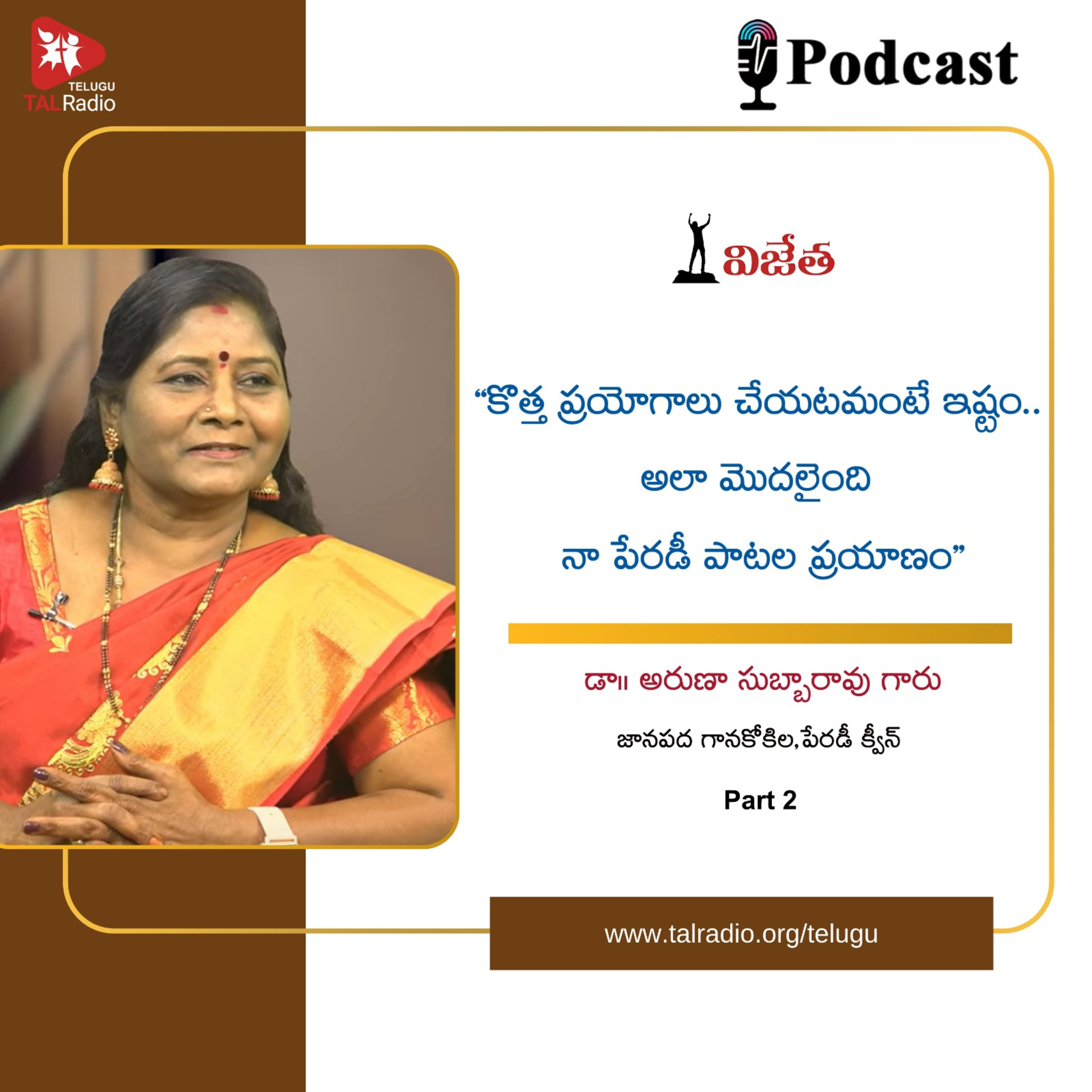 #TALRadioTelugu #ArunaSubbarao #FolkSongs #ParodyQueen #InspiringJourney #VijetaPodcast #TouchALife #TALRadio #TALPodcast