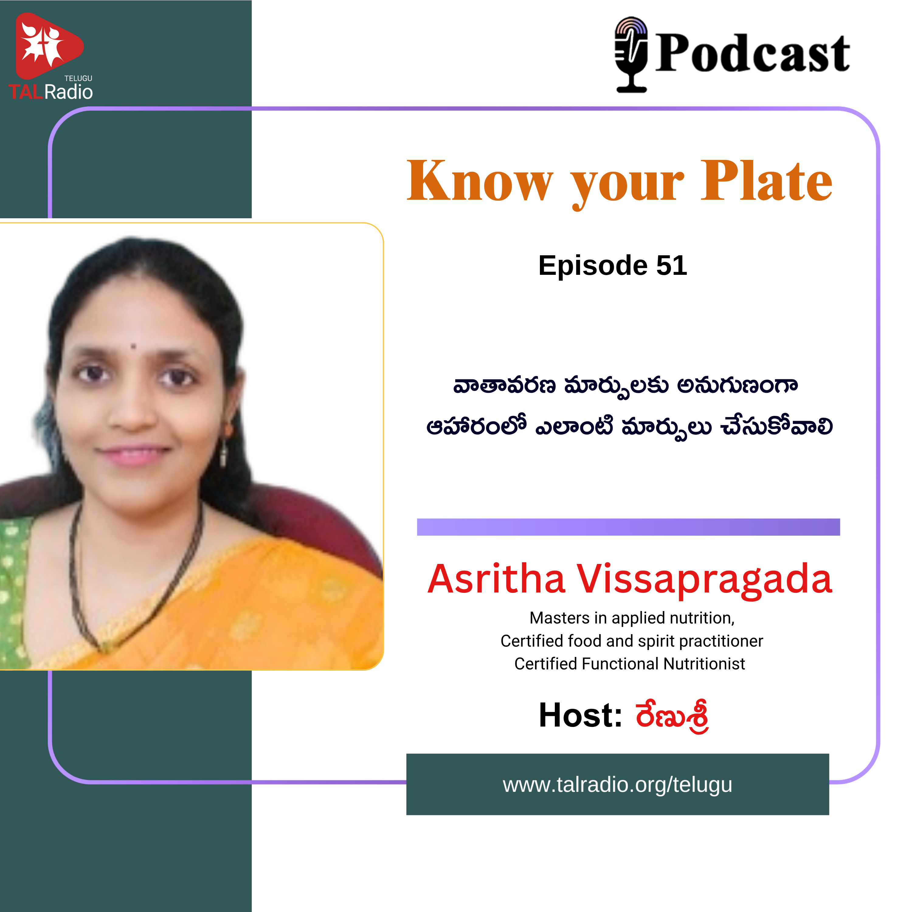 #TALRadioTelugu #KnowYourPlate #SeasonalEating #HealthyDietTips #MonsoonHealth #NutritionAdvice #PodcastRecommendation #TouchALife #TALRadio