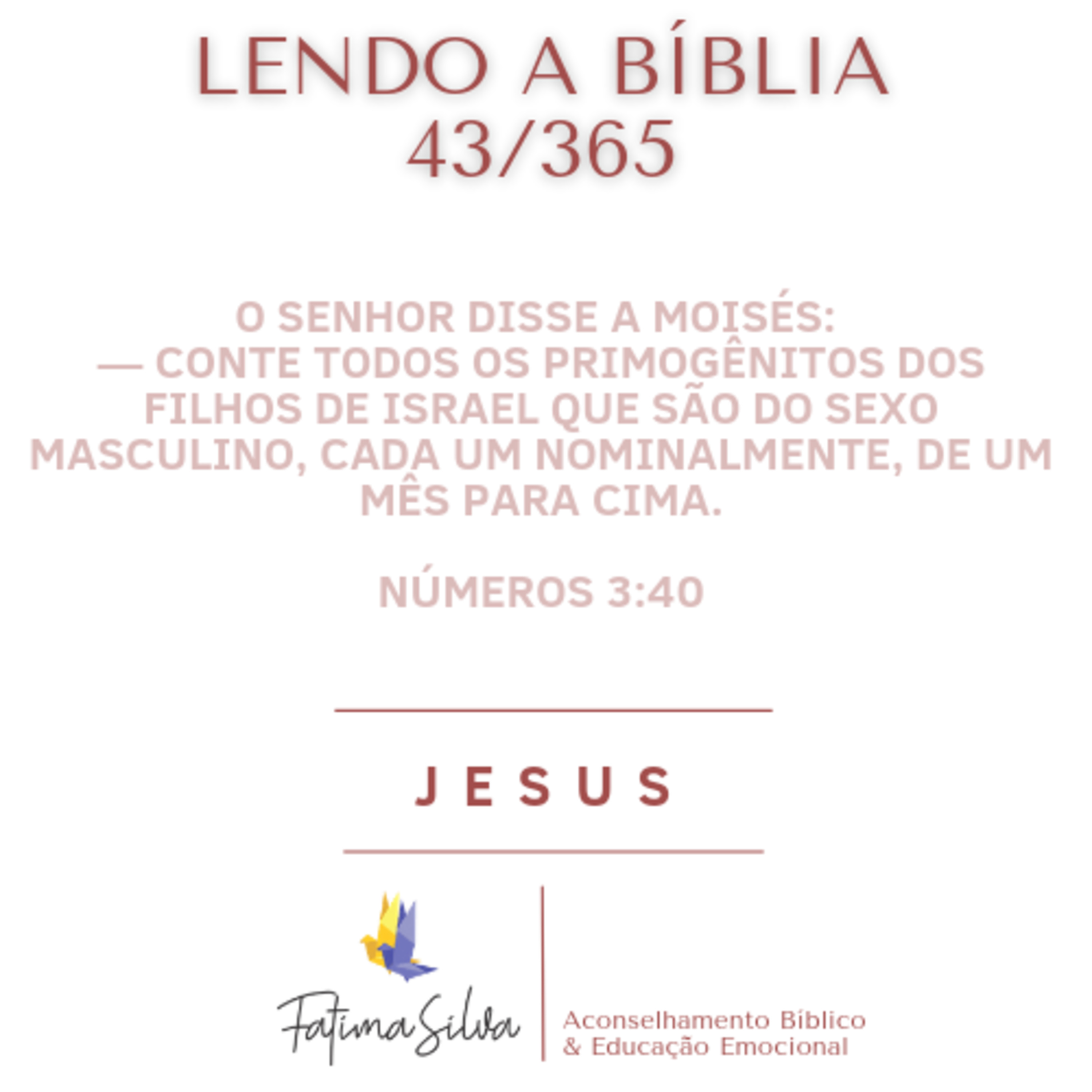 O Senhor disse a Moisés: — Conte todos os primogênitos dos filhos de Israel que são do sexo masculino, cada um nominalmente, de um mês para cima. E separe os levitas para mim — eu sou o Senhor — em lugar de todos os primogênitos dos filhos de Israel. Separe também os animais dos levitas em lugar de todos os primogênitos entre os animais dos filhos de Israel. Como o Senhor havia ordenado, Moisés contou todos os primogênitos entre os filhos de Israel. Todos os primogênitos do sexo masculino, contados nominalmente, de um mês para cima, segundo o censo, foram vinte e dois mil duzentos e setenta e três. O Senhor disse a Moisés: — Ponha os levitas em lugar de todos os primogênitos entre os filhos de Israel e os animais dos levitas em lugar dos animais dos filhos de Israel, porque os levitas serão meus. Eu sou o Senhor. Pelo resgate dos duzentos e setenta e três primogênitos dos filhos de Israel, que excedem o número dos levitas, recolha por cabeça sessenta gramas de prata, segundo o peso padrão do santuário, que é de doze gramas. Entregue a Arão e aos seus filhos esse dinheiro com o qual são resgatados os que excedem o número dos levitas. Então Moisés recolheu o dinheiro do resgate dos que excederam os que foram resgatados pelos levitas. Dos primogênitos dos filhos de Israel ele recolheu esse dinheiro, dezesseis quilos e meio de prata, segundo o peso padrão do santuário. E Moisés deu o dinheiro dos resgatados a Arão e a seus filhos, segundo o mandado do Senhor, como o Senhor havia ordenado a Moisés.